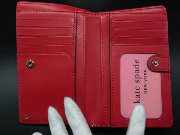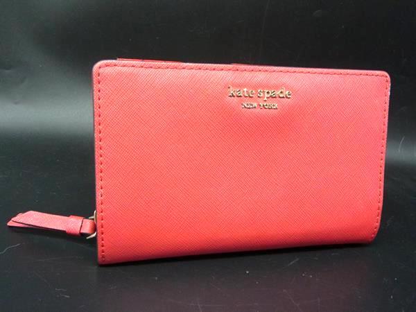 ■美品■ kate spade ケイトスペード レザー 二つ折り 財布 ウォレット 札入れ 小銭入れ カード入れ レディース レッド系 DJ4846