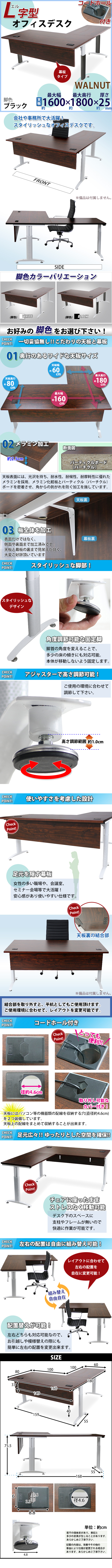 | 商品名 | 送料無料 オフィスデスク デスク L字型 幕板付 コードホール付 約W160×約D180×約H75.5 約W1600×約D1800×約H755 ウォールナット 平机 ワークデスク 事務机 パソコンデスク PCデスク 事務デスク L字デスク L型 コーナーデスク 会社 事務所 配線穴 t016160wal041hl |