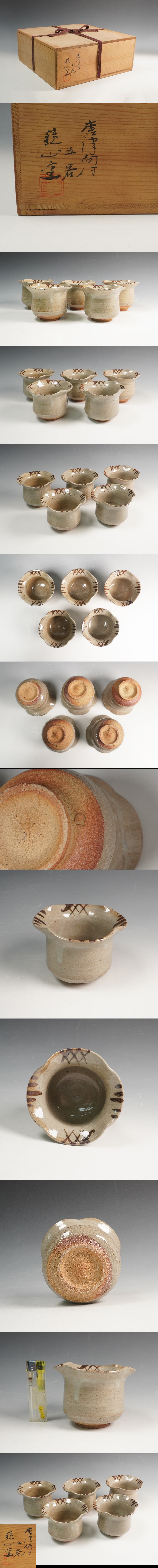 | 井上東也 作 鏡山窯 唐津向付 五客 共箱 保証品 | ||||
