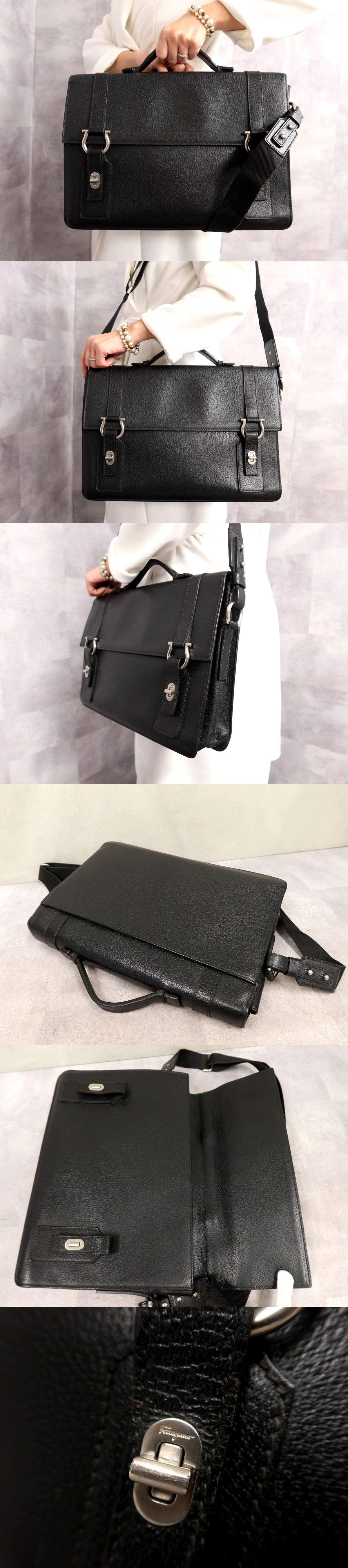 超美品●Salvatore Ferragamo フェラガモ●メンズ●ガンチーニ●ピッグスキン レザー 本革●2way ブリーフケース●黒●SV金具●A4●Js63548