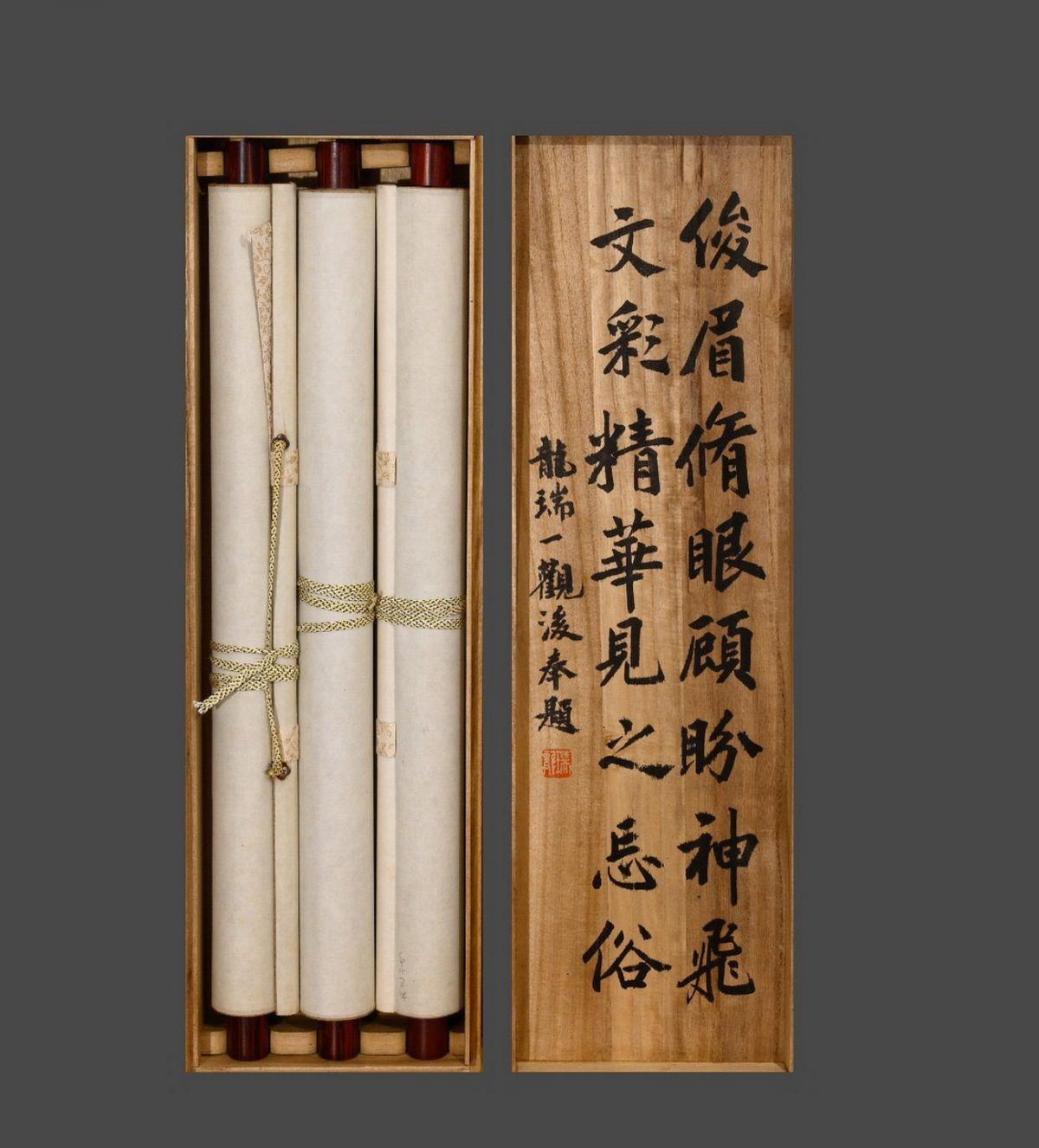 【清】某有名オークション買取「程十発書」中国書者 紙本【少女図・三対幅掛軸】肉筆保証 巻き物 中国畫 中国書道7L12-PX