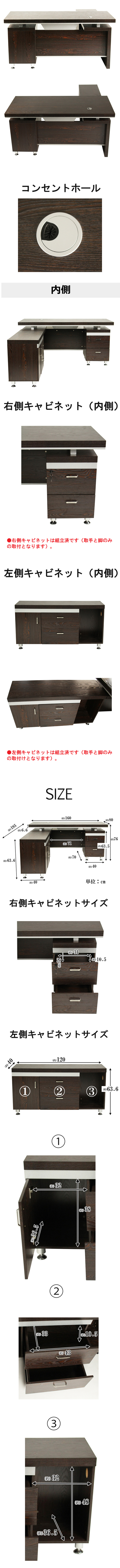 | 商品サイズ | ■メインデスク・・・・・・約160(幅)x約195(奥行き)x約76(高さ)(cm) ■天板の厚み・・・・・・・・・・約6.6(cm) |