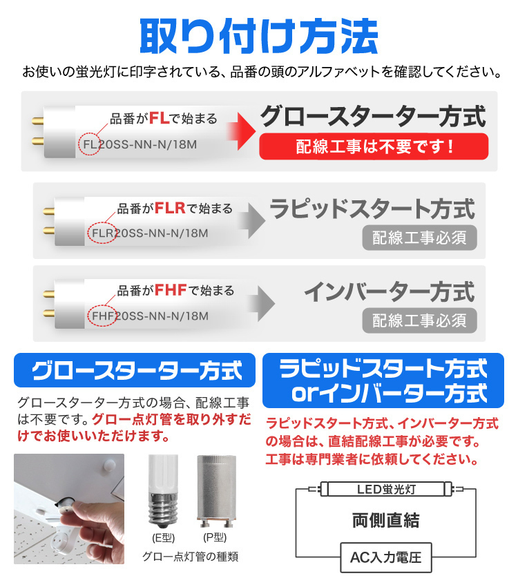 安心の1年保証付き! 高性能高輝度LED(SMD)を使用!驚異的な明るさを実現! 40W形 直管LED蛍光灯です。 工事無しで簡単取り付け可能! 今までネックになっていた配線工事を必要としないタイプです。 ◇当店のLED蛍光灯の特徴◇ 従来の蛍光灯と比べて、長寿命で約5倍長持ち。 低消費電力、省エネで電気料金を大幅削減。 放熱部はアルミニウム合金製で、放熱性が更に向上、軽量化。 本体部はポリカーボネート樹脂+合金製で、割落・飛散しにくい。 (ポリカーボネートは、防弾ガラスに採用されている強度の高い素材です。) 美しい昼光色でお部屋を明るく照らします! 【商品仕様】 直管LED蛍光灯 40W形 ×25 サイズ:全長(約):1198mm 直径(約):25.5mm 全光束(明るさ):1600lm 消費電力:18W 口金:G13 重量:(約):170g SMDタイプ:T8 設計寿命:(約):50,000時間 ※LED商品は一般的に長寿命とされておりますが、使用環境により異なる場合がございます。 色温度:6000K(昼光色) 演色性:>Ra72 使用周囲温度:-20~+40℃ カバー色:乳白色 材質:アルミ/ポリカーボネート 保証期間:7日間 ※商品到着後7日以内の初期不良・破損のみご対応させていただきます。 【注意事項】 ・グロースターター方式の器具は、グロー点灯管を取り外すだけで、そのままご使用できます。 ・一般蛍光管と交換するだけでご使用できます。ただし、ひとつの灯具に一般蛍光管や他のLED蛍光灯と混ぜて使用しないでください。 ・ラピッドスタート方式、インバーター方式、電子安定器、調光できる安定器を持つ灯具、他社LED蛍光灯などのために配線加工や改造をされた灯具は使用できません。 また取り付けないで下さい。 無理に使用を続けると、動作異常となったり、灯具や本製品が故障することがあり、まれに発煙、発火に至るおそれがあります。 |