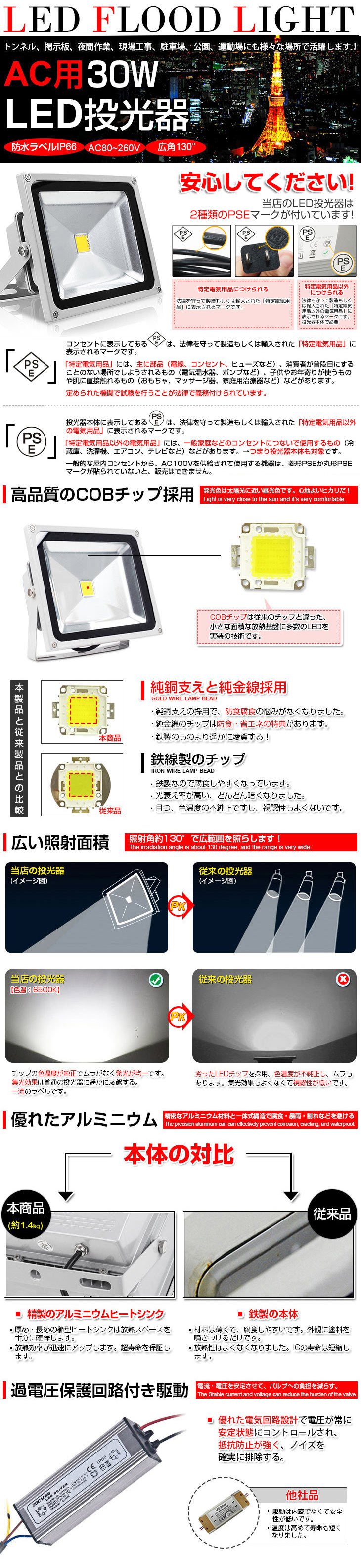 ◆LED採用の省エネ投光器ライト: 30Wと省電力で、従来の300W相当の明るさです!IP66規格の防水仕様!屋内·屋外両方ご利用OK!また倉庫用の照明·集魚灯·看板灯など用途は様々! ◆カバーは強化ガラス: 普通のガラスの4~5倍の強度を持つ強化ガラスを採用、光線の透過率は大幅アップします。透過率は98%以上に達する! ◆放熱性のいいアルミ合金: アルマイト処理のアルミ採用することで、放熱性を更なる段階に引き上げ!耐熱範囲内の正常な働きを保ちます。 ◆角度調整可能: ライトは柔軟な角度調整機能を持ってます。使い方も非常にカンタン! ◆驚きの長寿命: 本製品は100000時間以上の長寿命で、他の商品の2000時間を遥かに凌駕します。 ◆ファッションの設計: アルミ合金のボディ、グレーの外観は高級感が持ってます。 ◆広い使用範囲: トンネル、掲示板、ガソリンスタンド、夜間作業、現場工事、駐車場、公園、運動場にも様々な場所で活躍します!公園、運動、屋外や現場作業にも便利です!特に、夕暮れ時夜間作業にとても役立ちます! 虫が集まりにくいの も魅力です。 【保証】 ◆当商品は12っヶ月保証となります。 ◆お届けから1週間以内にご連絡のあった不良品の保証対応の送料は当方が負担いたします。 ◆保証期間内の不良品ですが、交換のみ対応しております。往復送料はお客様負担となります。在庫がない時だけ返金しますので、ご了承ください。 |
