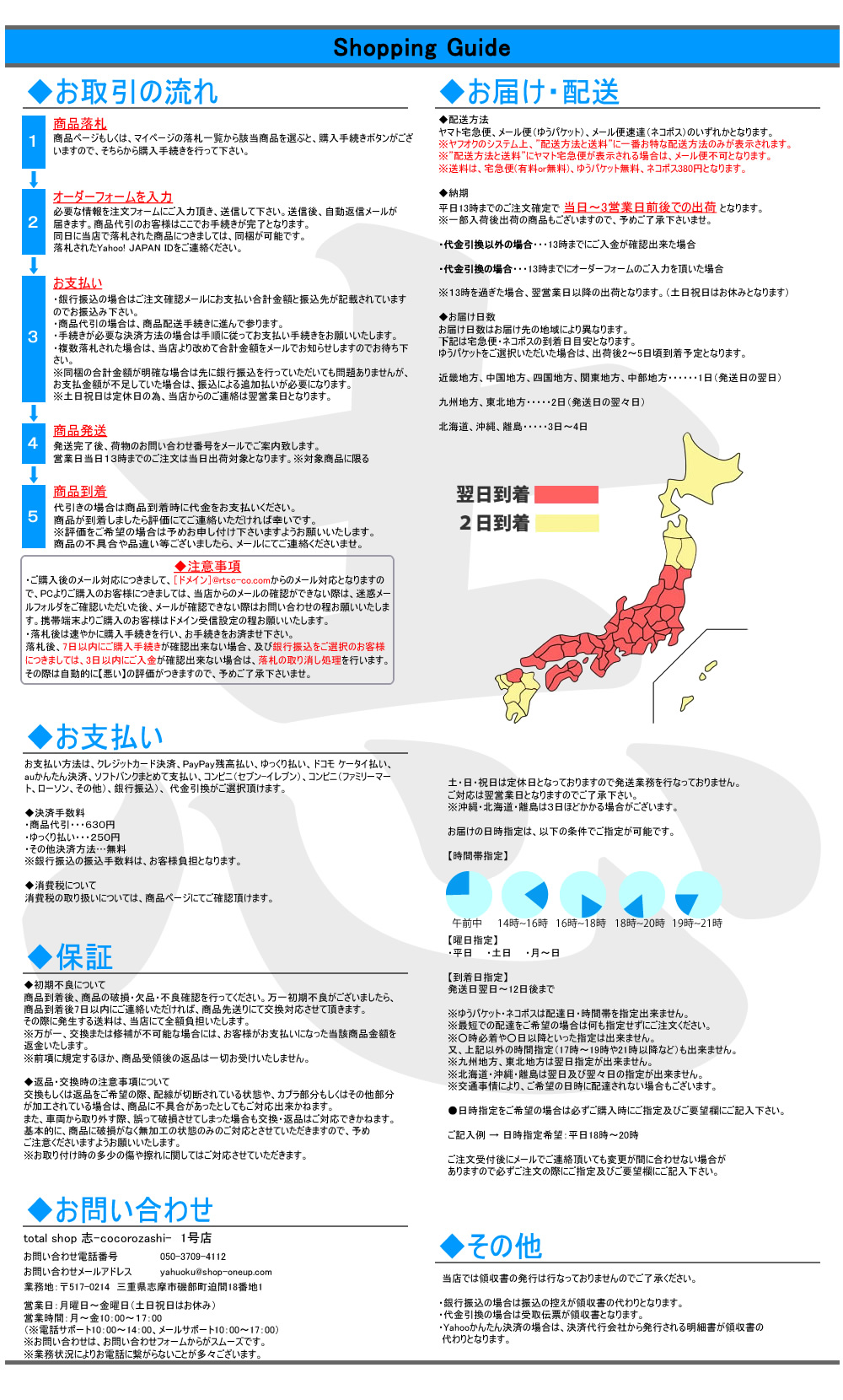 5. 对超大、超重的物品,请先了解我们的物流说明或咨询日本客服,以免因误解而给您造成损失!