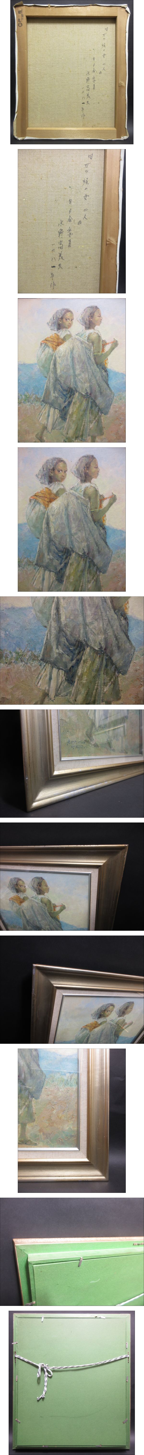 水野富美夫 真作保証 F8号『ガラ族の女二人』 1981年 白日会委員