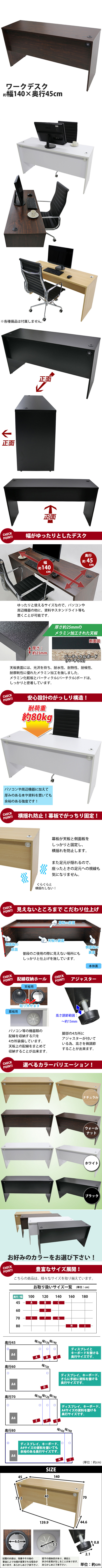 | 商品名 | 送料無料 ワークデスク W140×D45×H73.3 幕板 ゲーミングデスク オフィスデスク エグゼクティブデスク パソコンデスク PCデスク W1400×D450×H733 シンプルデスク オフィス家具 会社 事務所 自宅 机 つくえ 事務机 ウォールナット workdesk14045 |