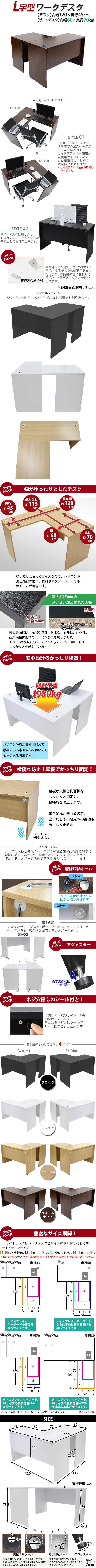 | 商品紹介 | ■作業スペースを広く確保出来る、L字型ワークデスクです。 ■サイドデスクの幅が約60cmのタイプです。 ■会議室や事務所等、オフィス家具として様々なシーンでお使いいただけます。 ■天板には、メラミン加工を施しています。 ■幕板が天板と側面板をがっちりと固定!横揺れを防止します。 ■ネジ穴隠しのシール付き。 ■デスクの天板と幕板に配線収納ホールが2カ所ずつ備わっています。 ■アジャスターで高さの調節が可能です。(高さ調節範囲〜約15mm) ※こちらの商品は、組立て式です。組立てにはプラスドライバーが必要です。お客様でご用意ください。 ※組立図が付属します。 ※サイドデスクの取り付けはデスクの右側専用となります。 ■材質:パーティクル(パーチクル)ボード(メラミン加工)(本体、サイドデスク)、プラスチック(アジャスター、配線収納ホール) ■重量:約39kg(デスク:約23kg、サイドデスク:約16kg) ■総耐荷重:約80kg ●新品商品ではありますが、輸入商品の為、多少の擦り傷などがある場合がございますので、ご納得の上ご購入下さいませ。 ●ご購入後、お客様ご都合によるご返品、ご返金等は一切お受け致しておりません。 ●本商品を使用した際に発生したトラブル、事故につきまして、当社は一切の責任を負いません。ご使用に関しましては、全て自己責任にてお願い致します。 ※カラーはウォールナットとなります。 |