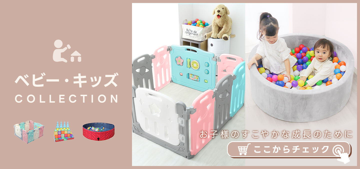 お子様に安全な軽くて柔らかい素材と丸みを帯びたデザイン! ママにも簡単に組み立てられるベビーサークルです。 赤ちゃんの脳の発達を助けるトイパネルも付いています。 工具不要で組み立て簡単! お好みの形に広げて接続部分のキャップを締めて固定するだけ! 外側から扉をロックすることができるので、お子様が勝手に外へ出てしまう危険性がありません。 お手入れはサッと拭くだけ! 組み立てたまま拭けるのでお手入れも簡単! いつでも清潔を保てます。 また、当店人気商品の プレイマット や ジョイントマット カラーボール との組み合わせも相性抜群です★ 【商品仕様】 こちらは16枚セット/グレー×ホワイトの商品ページとなります 内容:おもちゃパネル×1、扉パネル×1、パネル×14 対象年齢:6ヶ月から8歳頃まで 素材:ポリエチレン 【注意事項】 ・本製品の組み立て、設置は、必ず保護者の方が正しく行ってください。 ・必ず保護者のもとでご使用し、お子様の行動には十分ご注意ください。 ・暖房機器や火気の近く、または屋外では使用しないでください。破損や変形の原因となります。 ・パネル縁、柵の隙間の処理時、カッターでのバリ処理を行っております。 その為、バリ処理跡やへこみなどがある場合がございます。 こちらは製造上発生する跡の為、跡の状況によってはご返品、交換のご対応ができない場合がございます。 バリ処理には細心の注意を払っておりますが、万が一バリを見つけられた場合は、カッターで削り処理をお願い致します。 ・イメージ違い、お子様がかじるなどでのご交換、返品はできかねます。予めご了承ください。 ・商品は、モニターによって色合いが異なって見える場合があります。 ・仕様・デザインは改良のため予告なく変更することがあります。 |