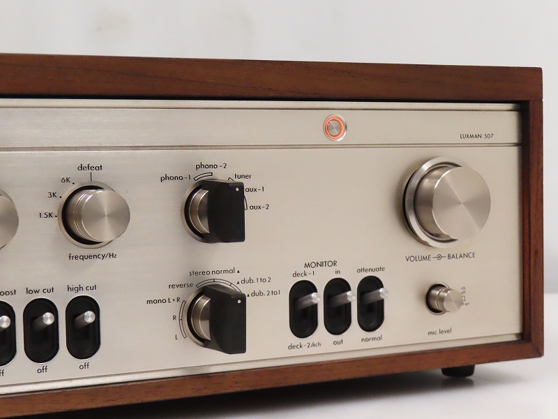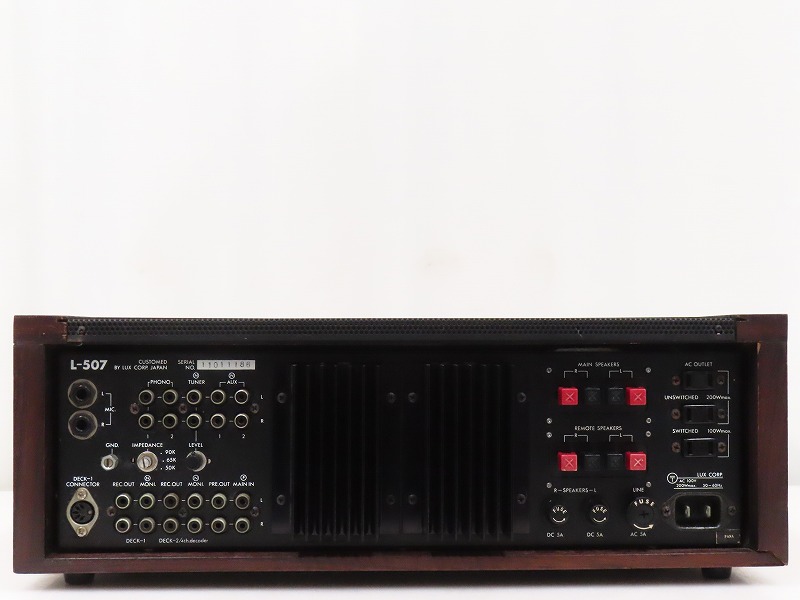 ■メーカー : LUXMAN ■型番 : L-507 ■外径寸法 : W450×H160×D268mm ■重量 : 11kg 【商品の状態 当店での確認内容】 動作確認をしたところ、スピーカー/ヘッドフォンから出音が確認出来ません。 電源ケーブルは付属しておりません。 ※上記により【難あり商品】としての出品となります。 「商品の状態」に関しましては当方主観の目安となります。外観などは中古品で個人差もありますので詳細は画像にてご判断ください。 画像にて不明な点はご質問下さい。 出品商品は画像のものですべてになります。画像に写っているもの以外は付属いたしません。 ※注意※ ヤフオクのシステム上、送料表記が送料未定となっておりますが、送料に関しては全て有償となりますので下記を参照下さい。 【送料 全国一律 2,080 円 沖縄、離島は別途お見積り】 ※送料がお得になるサービスです(下取りシステムのご案内です) ストア決済利用時にクレジットカードやPayPay残高/PayPayクレジットを利用の方は留意点がございますのでこちらを参照上ご利用ください。 当ストアでは商品を安全にお届け出来るよう提携運送会社と協議の上、発泡緩衝材や強度段ボールの使用等 運送会社が指定する梱包方法や資材を採用しております。 より安全にお届け出来るよう商品仕様により梱包サイズが大きくなる場合や個口数が増える事がございます。 【当ストアオークションルールを入札前に必ずご確認ください。】 【落札後の取引手順】 ・落札後は取引ナビにて、必要事項をご入力後、送信ください。 取引終了後48時間(土、日は除く)以内に入力をお願い致します。 ※ご連絡が頂けない場合は落札者様都合でのキャンセルとさせていただきます。 ・落札代金(商品代金+消費税+送料)の入金をお願い致します。 ※大型商品の場合は送料確定後の決済となる為取引ナビを入力頂き、当ストアより送料のご案内が来るまでお待ちください。(土曜、日曜、祝日の場合は翌営業日より順次ご案内いたします) ・お支払い方法はクレジットカード/PayPay残高/PayPayクレジット/PayPay銀行/ゆうちょ銀行のみです。 ※商品代金引換(代引き)のお取り扱いはしておりません。 ※領収証の発行が必要な方はご連絡ください。 ※銀行振込の際の振込手数料はご負担願います。 ・入金確認後に出荷手配を致します。 (原則入金確認後3営業日以内に発送いたしますが、大型や重量のある製品はお時間をいただく場合もございます。) ・発送は当店指定の運送会社の元払いのみでの発送となります。 ※他の運送会社、送料代引き等は致しかねます。 ※落札者様ご自身での運送会社の手配いただく事も可能ですが荷物事故の責任の所在の問題上、梱包は致しかねます。 ※店頭にお越し頂き手渡しも可能(福岡市早良区)です。ご希望の方はご落札後にご連絡下さい。 ・大型/重量物商品の送料につきましては商品の特性上、荷降ろし状況等により送料が大きく前後し運送業者に別途見積りが必要な為、早めのお問い合わせにてお見積り上、入札をお願い致します。 【初期不良の保証について】 ・商品到着後の初期動作不良、また配送中の事故による破損、不具合が有る場合は、商品発送後10日以内に当ストアまでご連絡ください。当ストアでは修理での対応を優先させて頂きますが、修理不可の場合は全額返金させて頂きます。 (商品代金+消費税+送料のお支払い頂いた金額となります) 【初期不良の保証の対象外について】 次の場合は保証の対象外となりますのご留意ください ・ジャンク商品、現状商品、難あり商品での出品商品。 ※難あり商品に関しましては動作確認時に一部動作不良が確認された商品になり、記載している動作確認以外にも、動作不良がある可能性もございます。こちらに関しましても保証対象外となりますことをご理解ください。 ・年代物のオーディオなどで、当店にてわからない範囲で部品が交換されている場合 ・楽器類の特殊機材(マイクロスコープ等)での確認までは行っておりません。気になる方は事前にご質問いただくか、入札をお控えください。 ※初期不良に関しましては【商品の状態】に記載のもの、またそれによって起因する動作不良は対象外です。 ※商品発送後10日を過ぎてのご連絡は対応が出来ませんので、商品が到着しましたらお早めに確認をお願い致します。 【メーカー保証の加入・継承】 ・未使用品、展示品やメーカー保証期間が残っている商品に関しまして、メーカー保証の加入、継承が必要な方は、落札後取引ナビ内にて当ストアにお知らせください。商品発送までにご連絡いただけない場合、メーカー保証の手続きを承れない場合があります。 【評価について】 ・評価不要の場合、必ず取引ナビの「要望欄」にてお知らせください。それ以外でご連絡をいただいた場合、対応できない可能性がございます。一度行った評価はシステム上取り消しが行えませんのでご了承ください。 【入札削除・キャンセルについて】 ・入札後はトラブル防止の為い