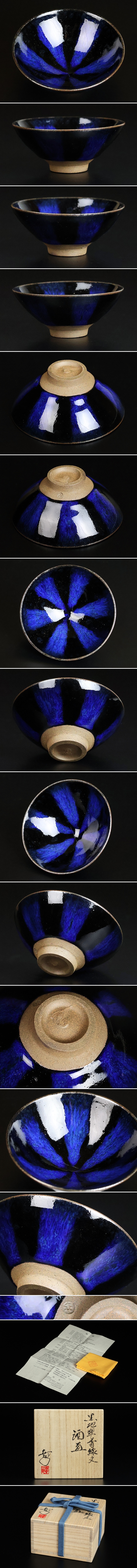 歪みのない美しい造形、線文のモダンなデザイン、漆黒の黒地と見込みの深いブルーが究極の景色を構築した実に出来が良い。