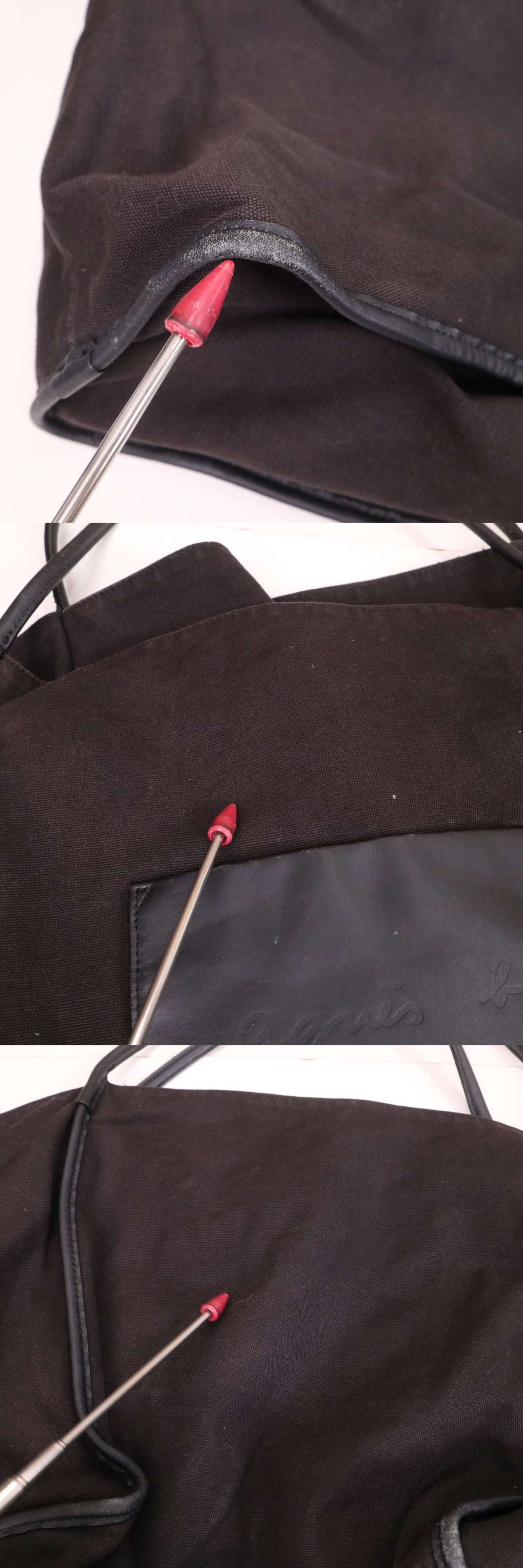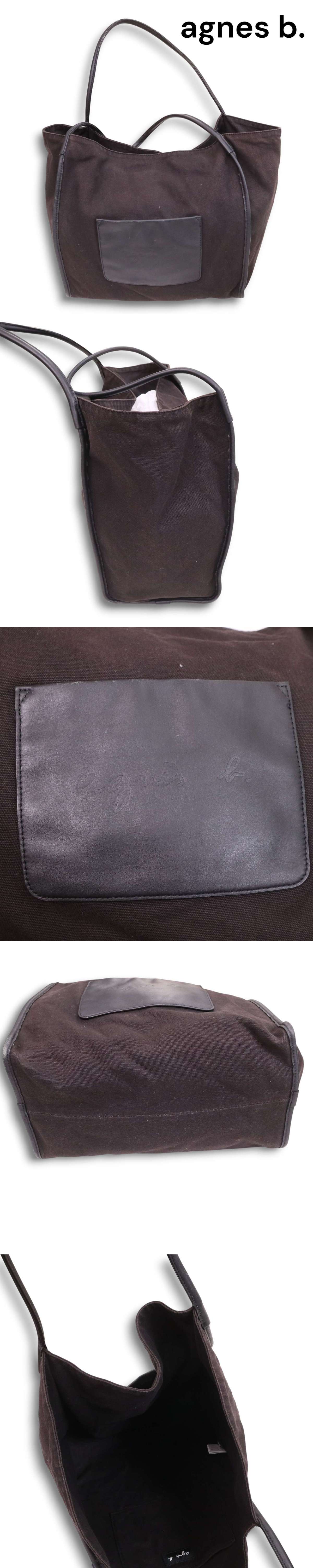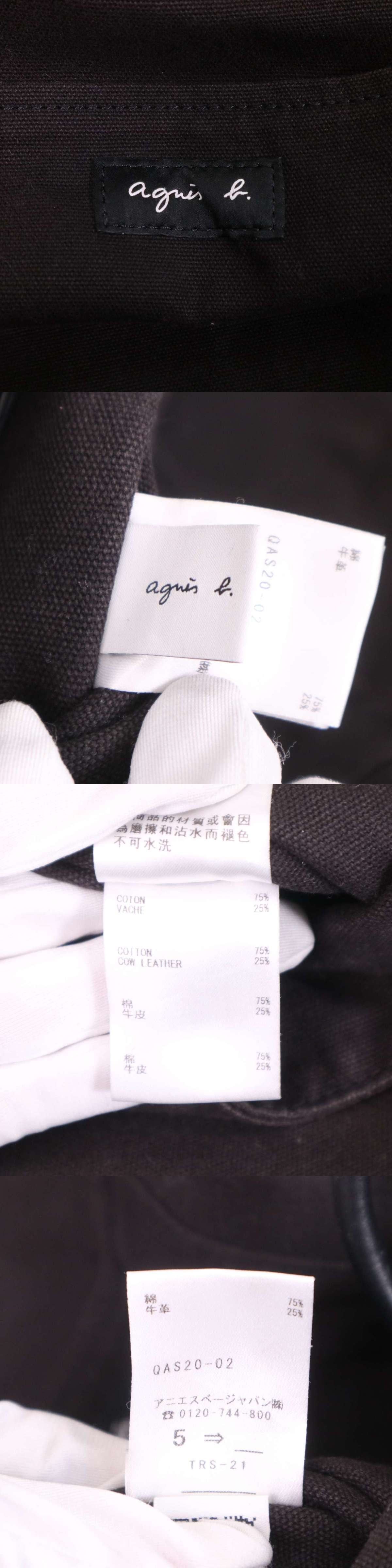 agnes b. アニエスベー 牛革♪ カウ レザー使い キャンバス トート バッグ Sz.F レディース 黒