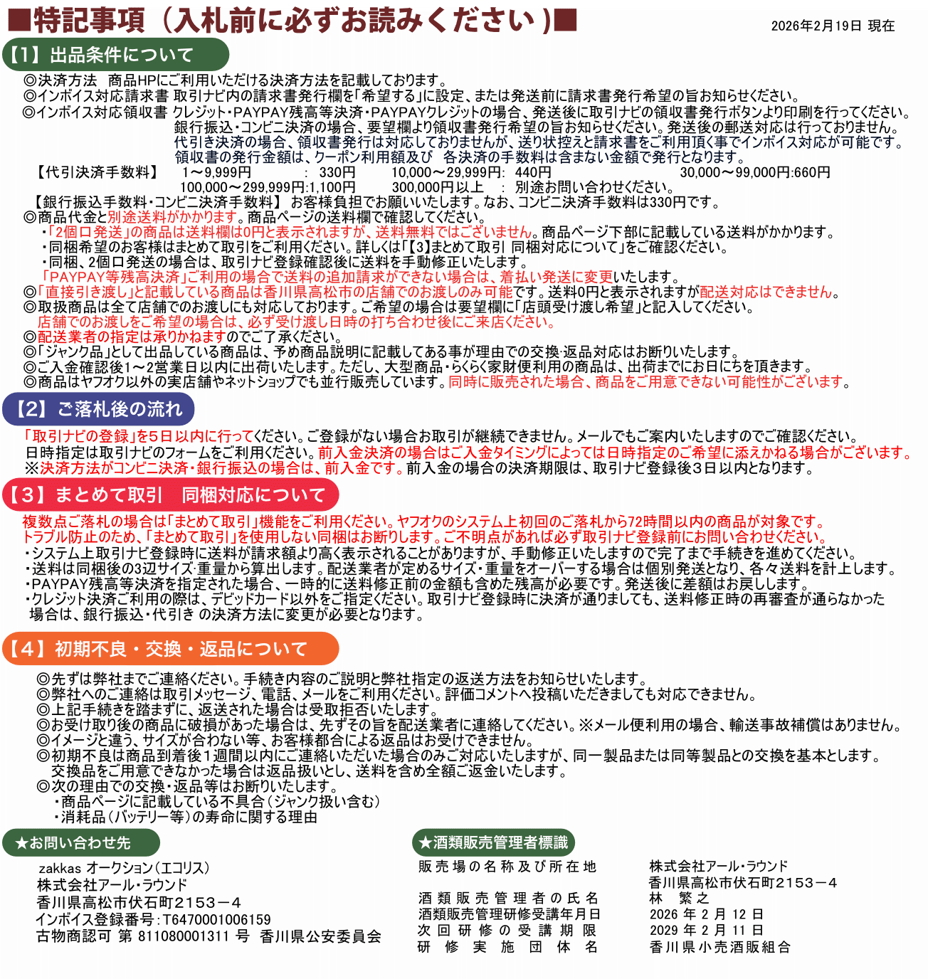 Ⅲ.一旦成功中标,您必须全额支付该拍品(成交价+消费税+银行转账费+日本邮费+代购费)。