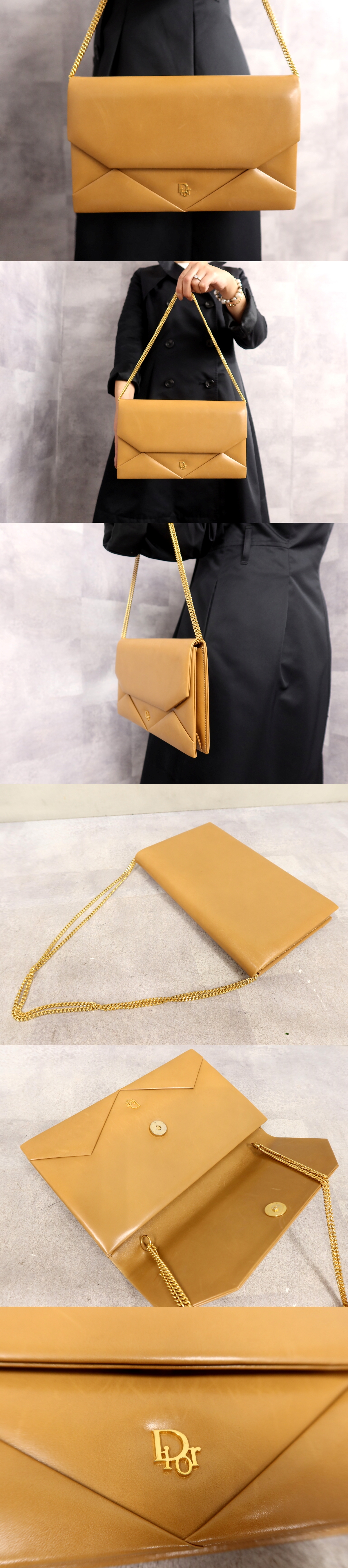 ●超美品●Christian Dior クリスチャン・ディオール●ロゴ金具●カーフ レザー 本革●チェーン ショルダー バッグ●キャメル●Js63387