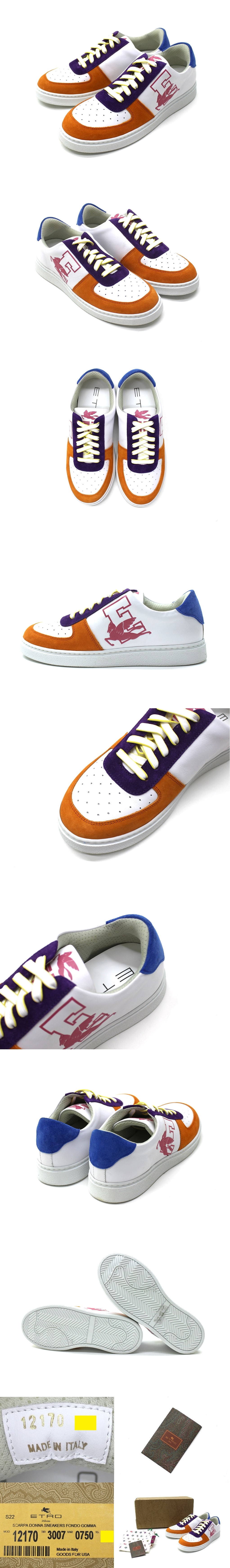14万新品◆40=25cm エトロ PEGASOロゴ カラーブロック切り替えレザースニーカー エアフォースワン 白マルチカラー【ETRO】