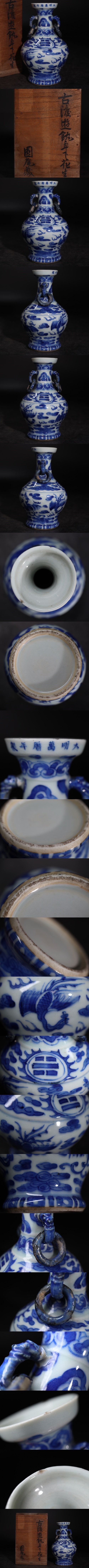 | 時代 「 古渡 遊 卓下 花生 」 大明萬暦年製 款 花瓶 識箱付/ 古染付 鳳凰図 遊環 双耳 明 萬暦 中国美術 壺 .G3705 |
