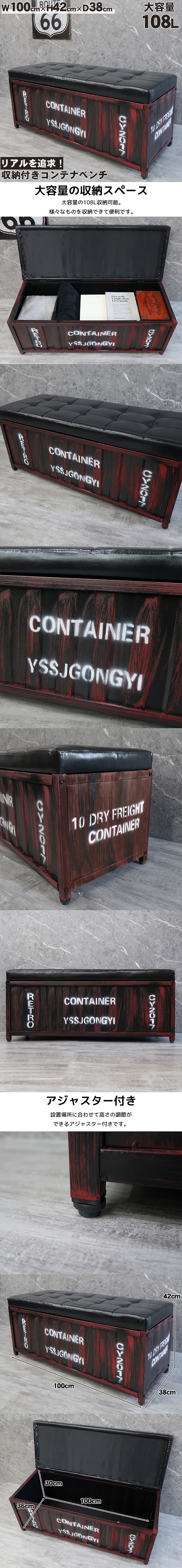 ベンチ コンテナ 収納ベンチ 収納ボックス おしゃれ 蓋付き オットマン チェア レトロ アメリカン雑貨 ヴィンテージ 椅子 収納 BZ-12RD