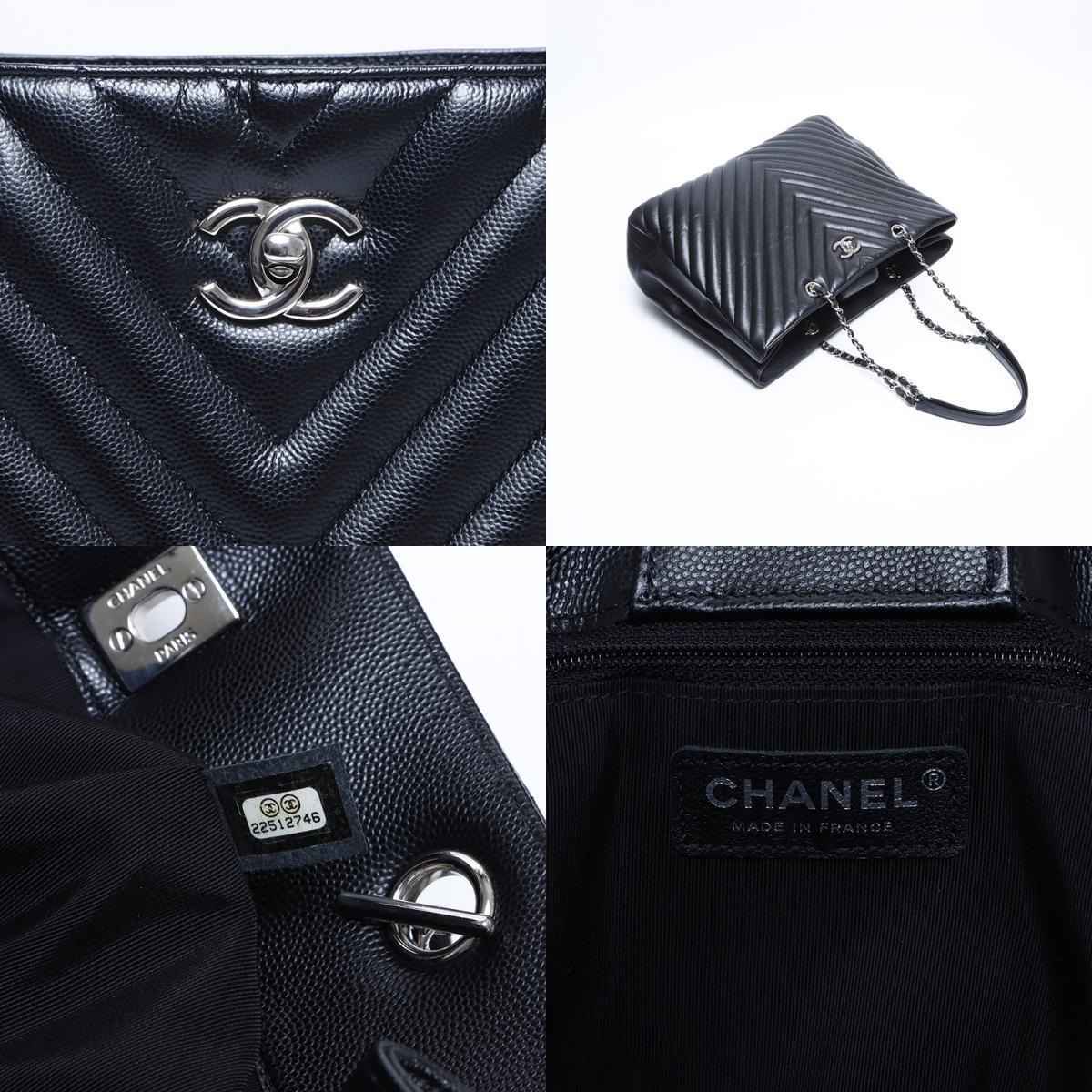 未使用保管品 CHANEL 22番台 Vステッチ シルバー金具 キャビアスキン ショルダーバッグ ブラック