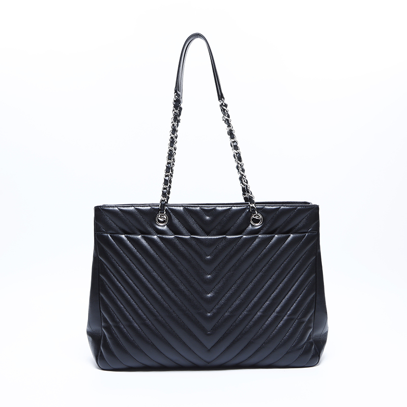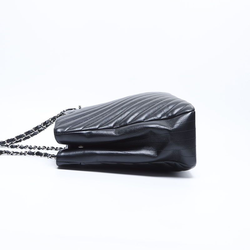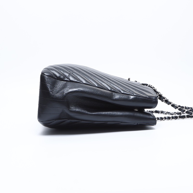 シャネル CHANEL ショルダーバッグ 22番台 Vステッチ シルバー金具 キャビアスキン ブラック