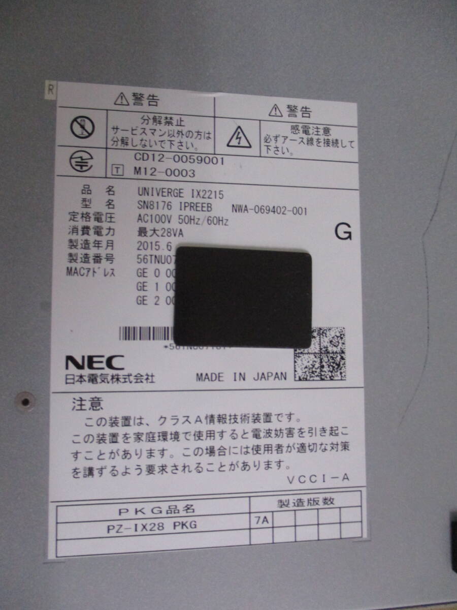 ★メーカー:NEC【 IX2215 】UNIVERGE VPN対応ルーター ★通電確認 ★電源コード付