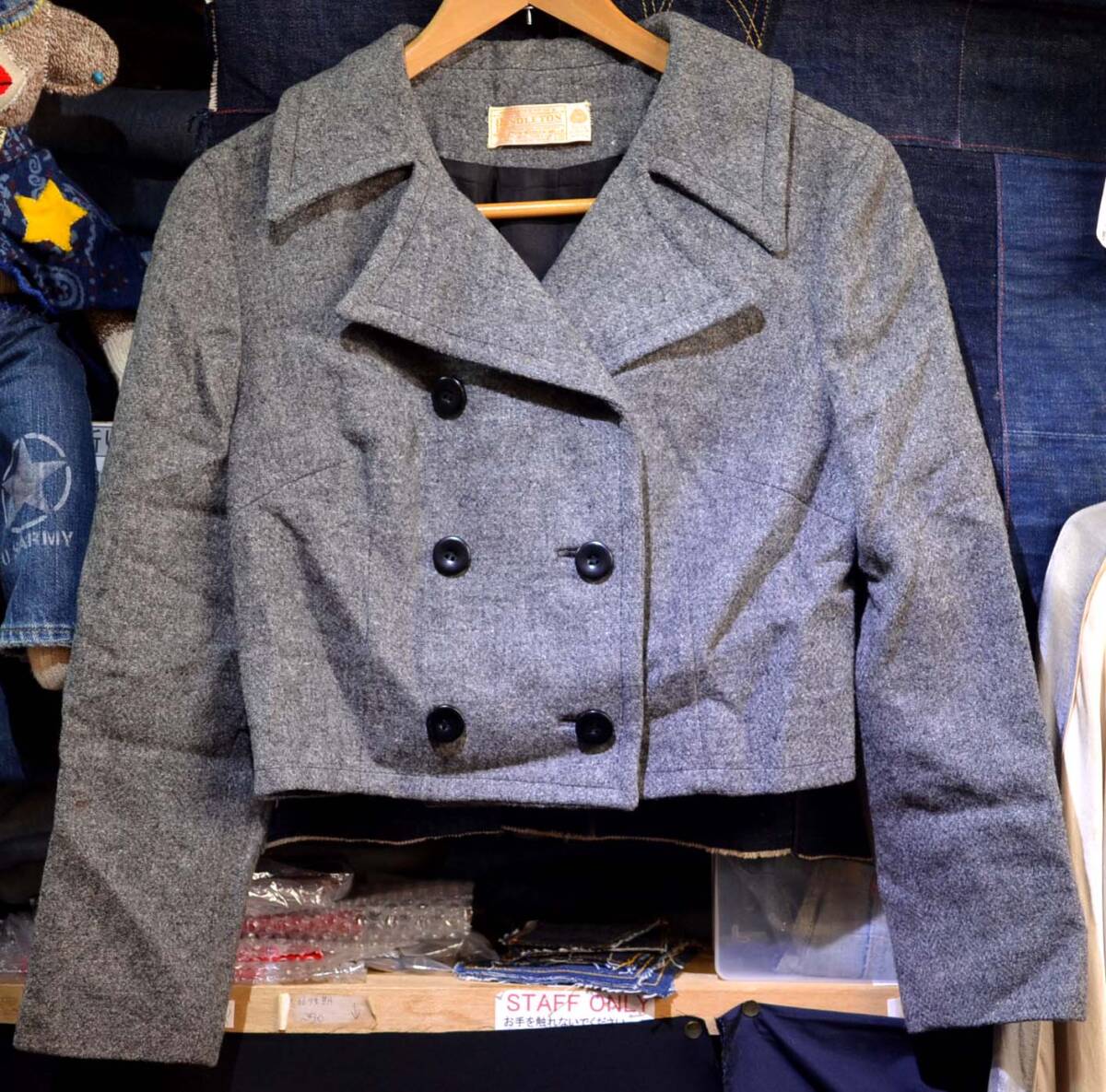 60年代打と思います。ざっと確認しましたが、ノーダメージの極上です。ただし、見落としはご容赦ください。表記はありませんが、アメリカ製で間違いないと思います(表記が入るのは70年代からです)。ウール100%。60'sらしいかっこいいジャケットです。