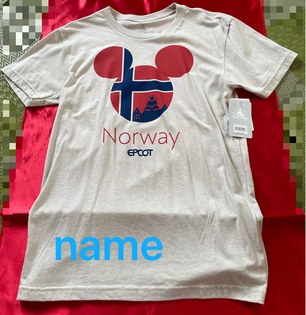 ディズニーストア ミッキーマウス 半袖 Tシャツ Norway EPCOT Flag WORLD SHOWCASE L