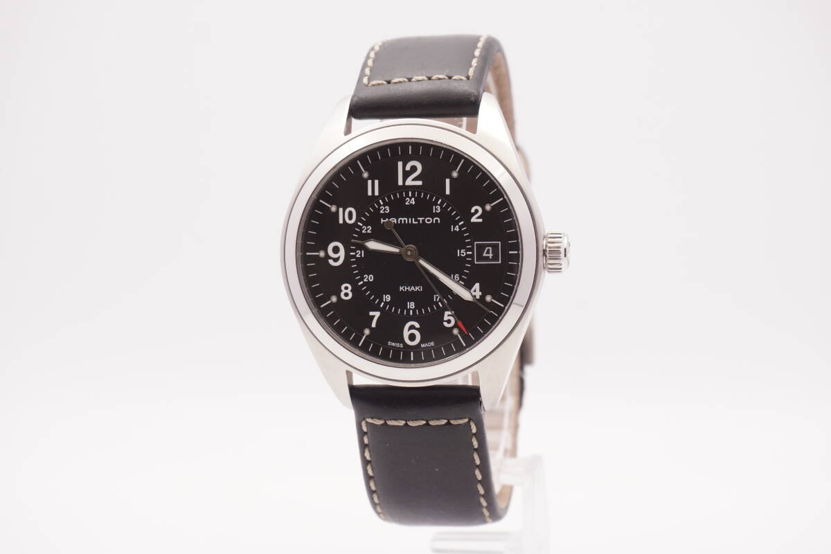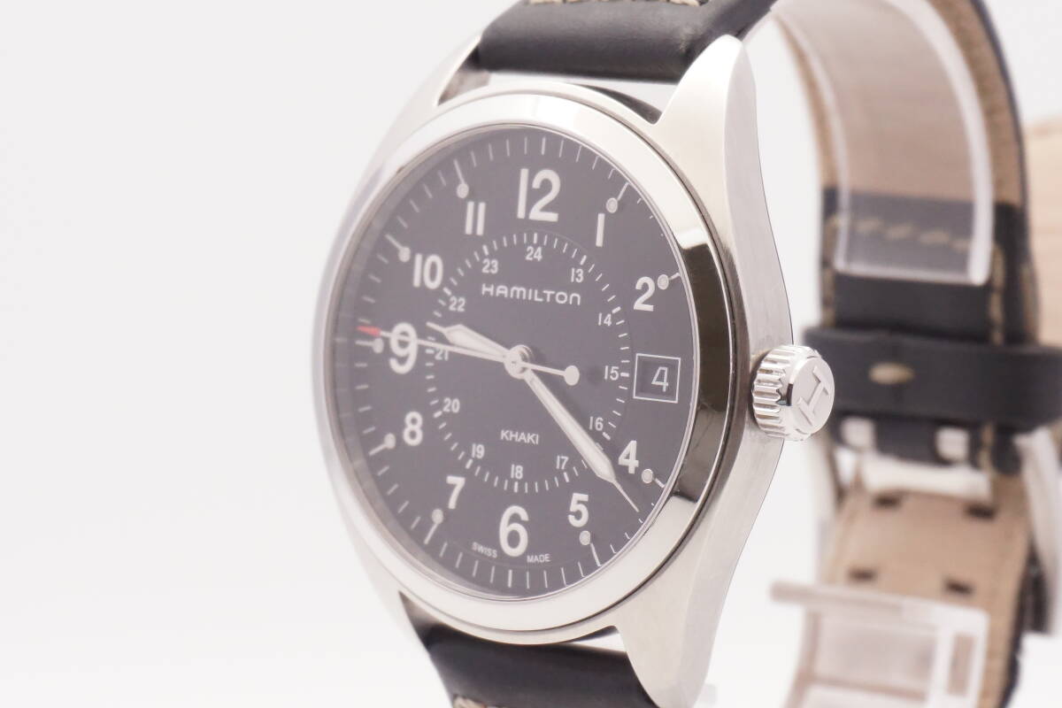 稼動品 美品 新品電池 HAMILTON ハミルトン カーキフィールド H685510 クオーツ デイト ブラック文字盤 メンズ腕時計