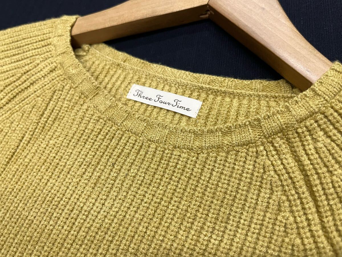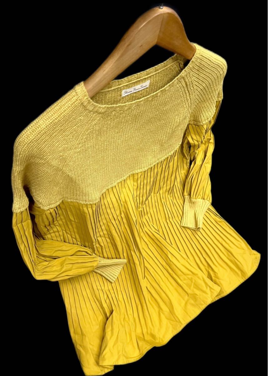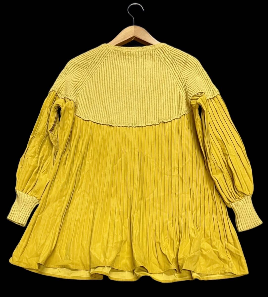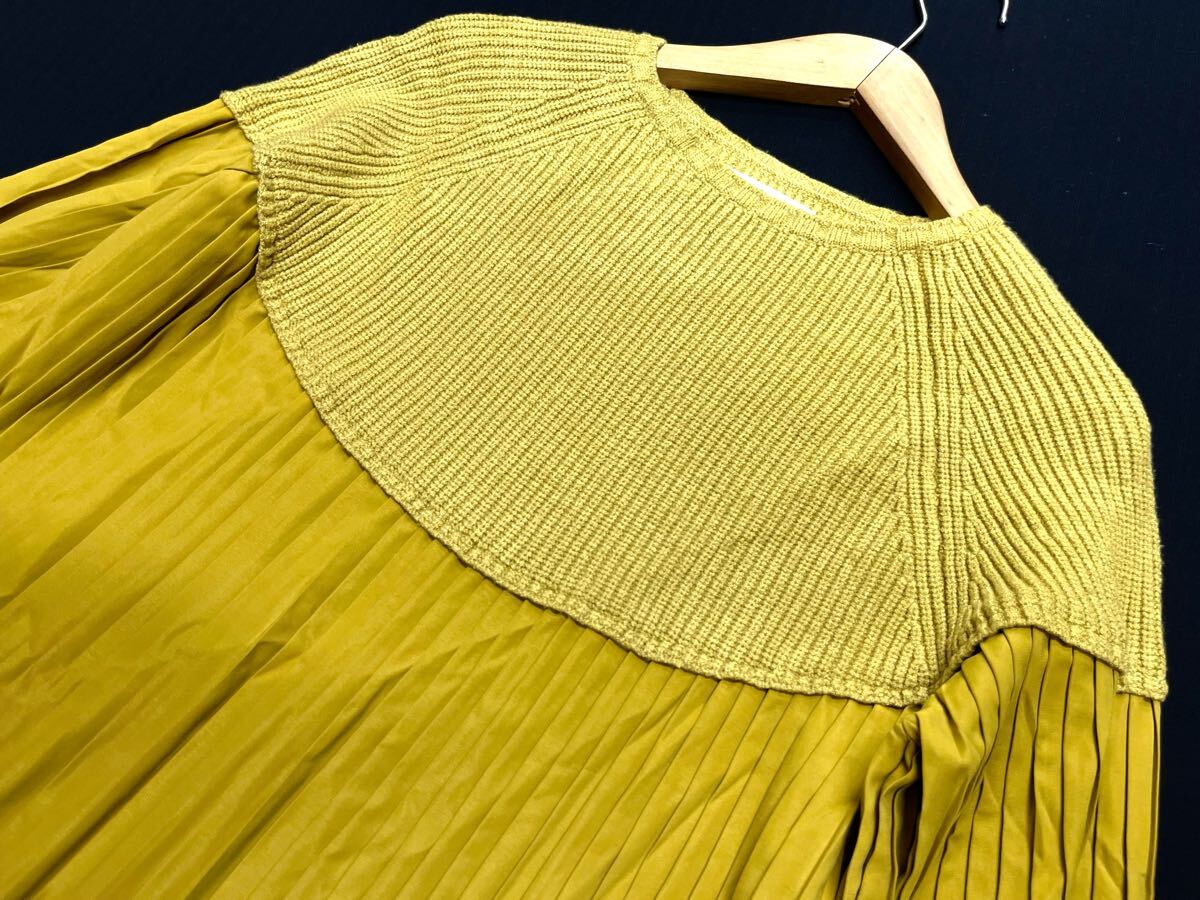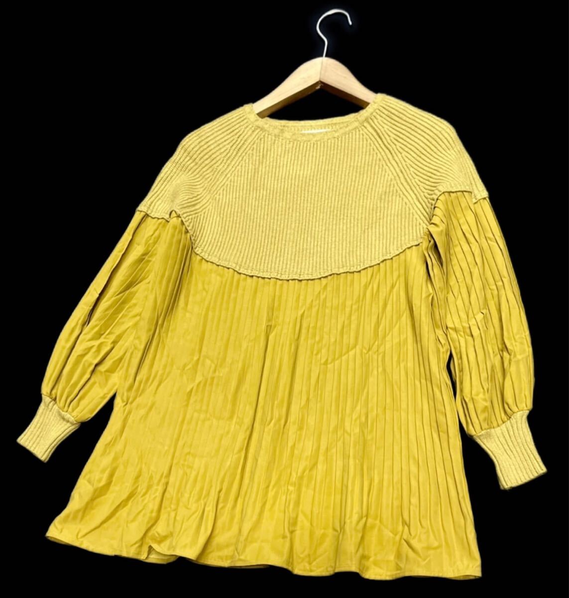 Three Four Time★(F)ニット×プリーツ 長袖 チュニック /マスタード系
