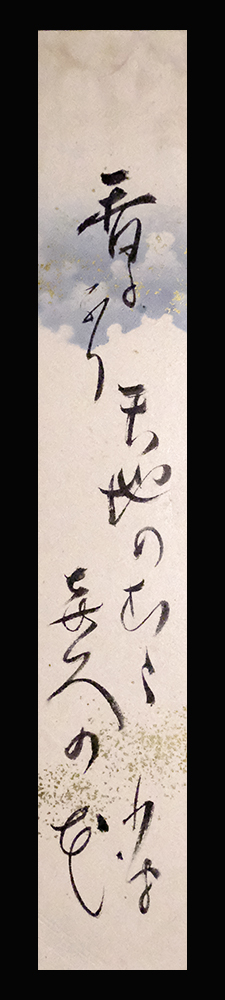 【翻字】 「香るなり天地のむた喜久(菊)の花 小波」 【語注】 初句切れ。〇天地のむた=天地とともに。「むた」は万葉語。 〇喜久=菊。めでたい漢字を使ってキクの記した。 紙本(金砂子散料紙)未装短冊1点 作品寸法:36.0cm x 6.0cm 商品状態:概ね良好。実際の品を画像にてお確かめ下さい。 ★本品は印刷ではなく肉筆の作品です。 ★本品は真作保証の作品です。 巌谷小波(いわや-さざなみ) 1870-1933。明治-昭和時代前期の児童文学作家,小説家。 明治3年6月6日生まれ。巌谷一六の3男。硯友社にはいり,小説「妹背貝(いもせがい)」などをかく。明治24年おとぎ話「こがね丸」が好評を得,以後童話に専念。「少年世界」編集長をつとめ,「日本昔噺(ばなし)」「世界お伽噺」などをまとめる。口演童話もはじめた。昭和8年9月5日死去。64歳。東京出身。本名は季雄(すえお)。筆名は別に大江小波。 出典:講談社『デジタル版 日本人名大辞典+Plus』 |