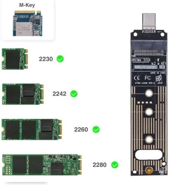 ■NVMe M-Key USBアダプターは、Samsung 950Pro / 960Evo / PM951 / PM961 / SM951 / SM961 / 970 EVO / 970 PRO、および WD Black / Intel / CrucialなどのPCIe(M-KEY)インターフェイスタイプを備えたその他のM.2SSDを対応できます。