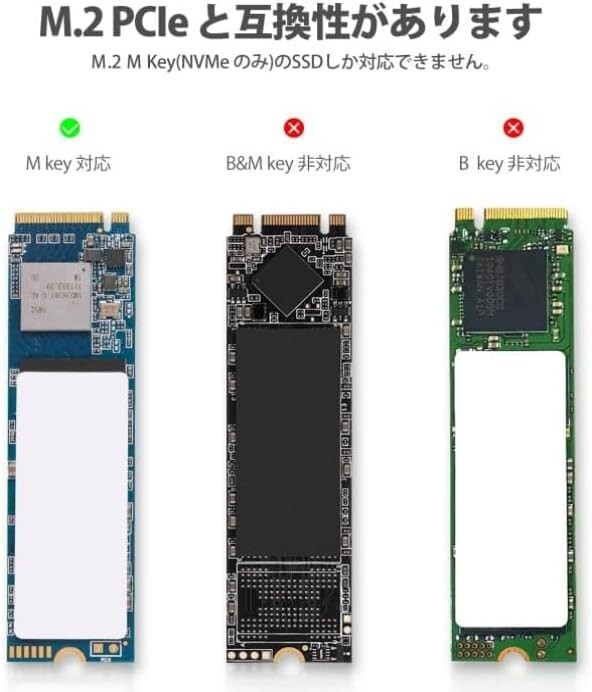 ■入力インターフェース:PCIeNVMeベースのMキーとB + MキーSSDのみを対応し、SATAベースのSSDは対応しません。 出力インターフェイス:USB3.1およびUSB2.0との下位互換性の対応
