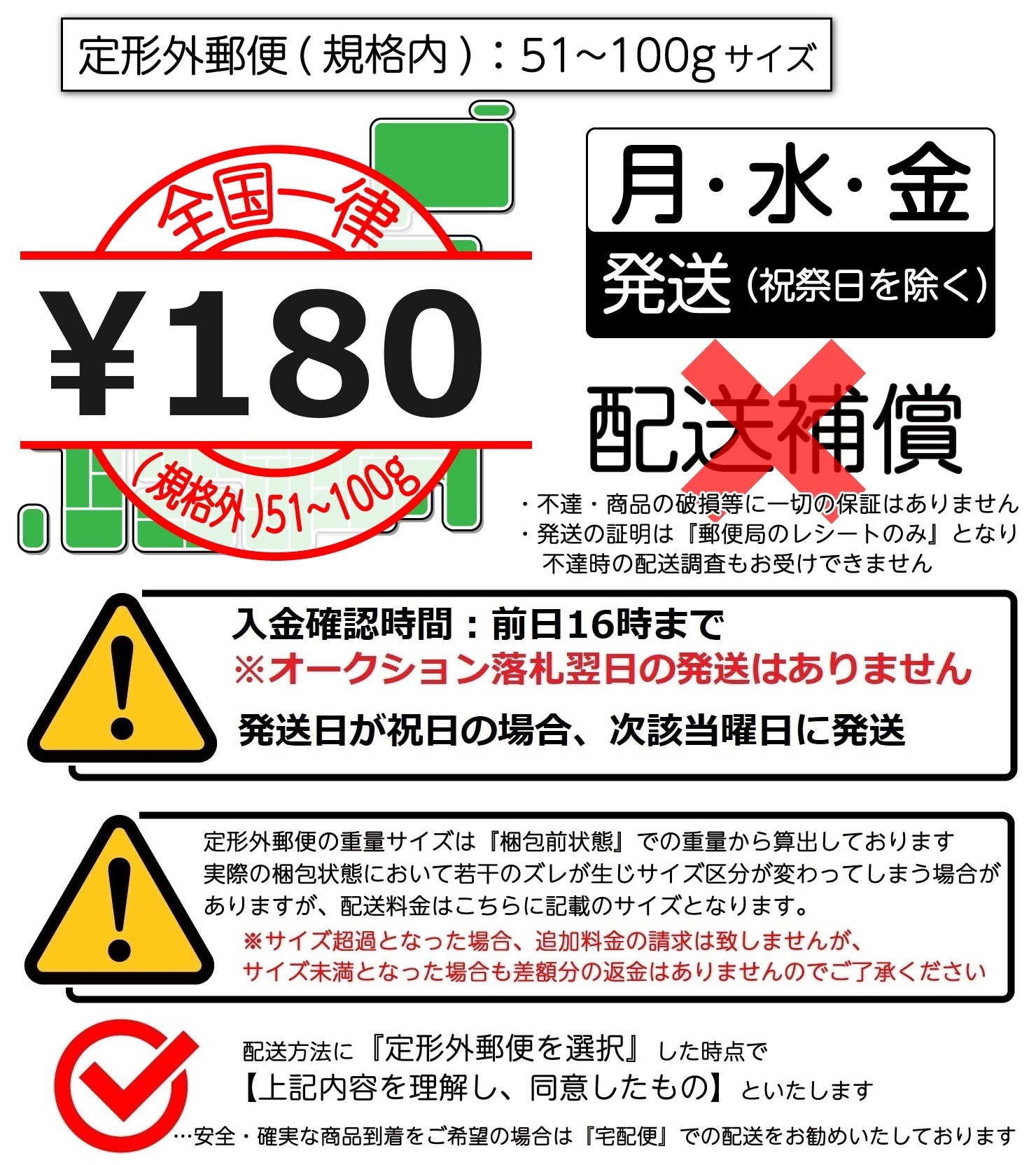 4.如果您的货品寄往日本本地,您在包裹签收前,请务必确认外包装是否有变形、破损、包装受潮、纸箱变色、纸箱重新封胶;商品是否破损、缺货。如有上述状况,您有权要求开封验货,以确认商品完整。如发现商品破损或少件,您务必用手机拍下破损情况,要求在快递单上写下实际情况且有权选择拒收,由快递公司来承担破损责任。并于当天告知我们,如未反馈,日拍网默认您货品完好,不承担任何责任。如果物品选择第三方物流(例如:第三方转运),请自行与第三方签订责任风险