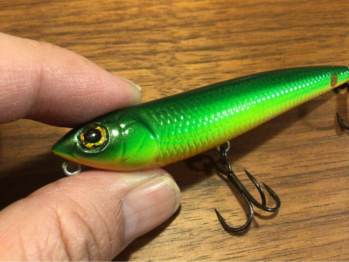 カラーはメガバス社で似た物になるとPOPXのラスタピーコックの縞模様が無い感じ、1stグリフォンで言うとナプチャルサンフィッシュに良く似たカラーです。