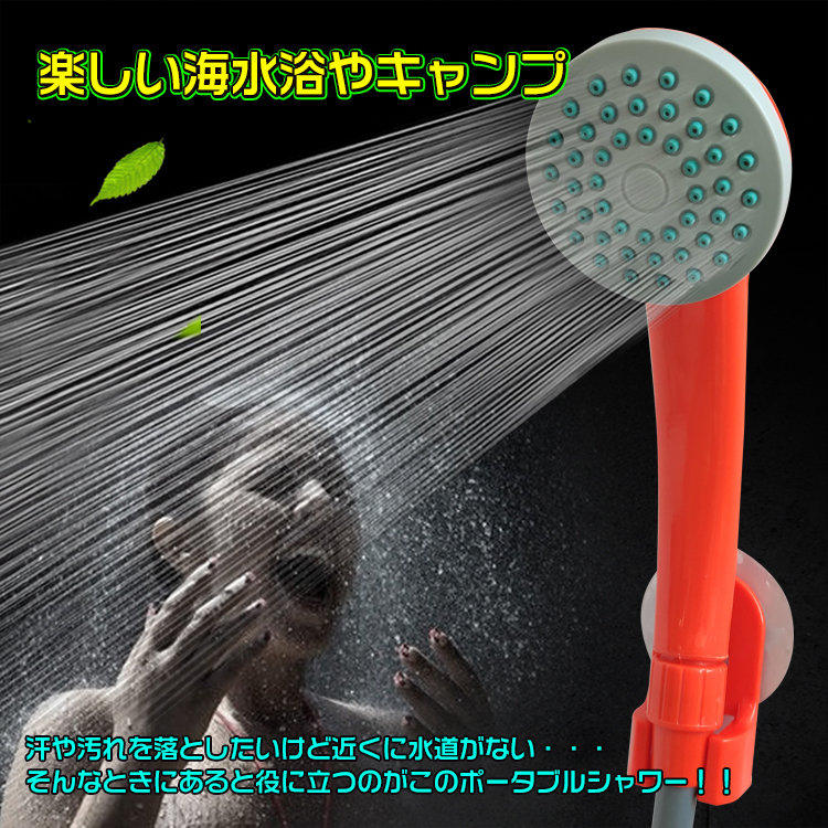 1円 シャワー ヘッド ホース アウトドア フック 吸盤 電動 ポータブル USB 携帯 簡易 海水浴 キャンプ お風呂 防災 ny278