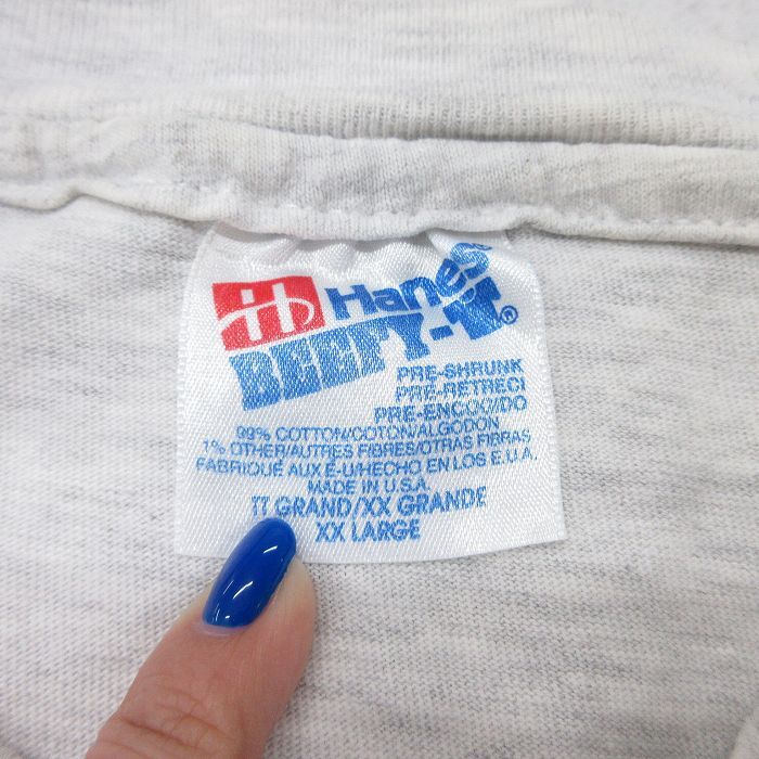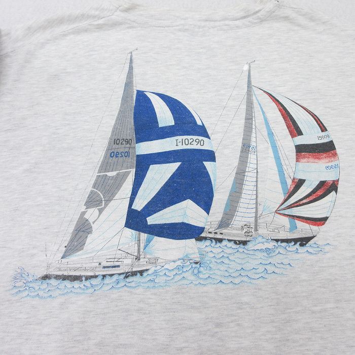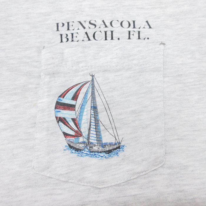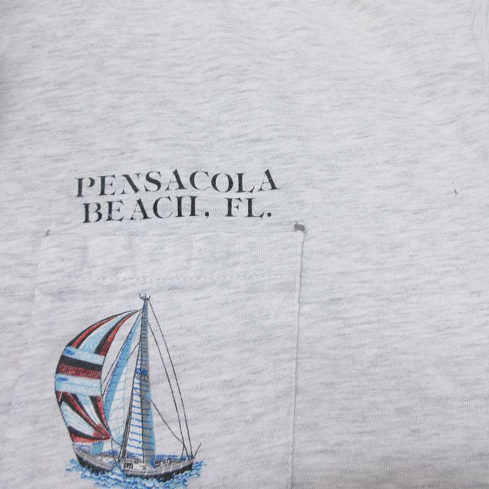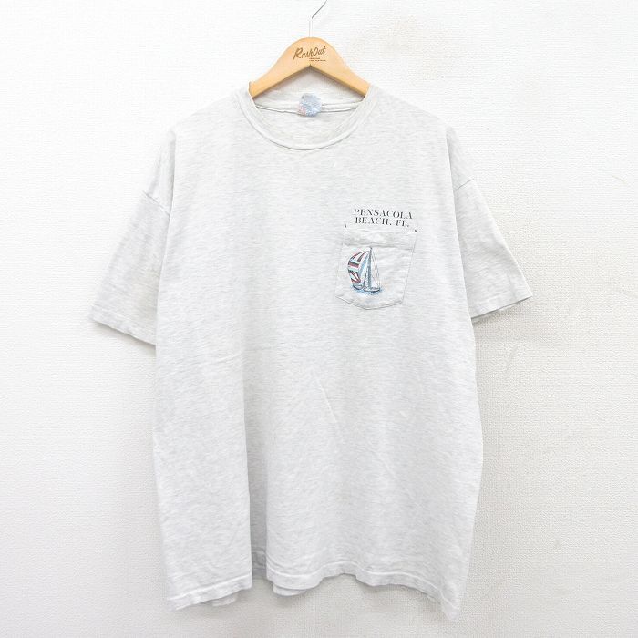 【商品名】 XL★古着 ヘインズ 半袖 ビンテージ Tシャツ メンズ 90年代 90s ヨット 胸ポケット付き 大きいサイズ クルーネック USA製 薄グレー 霜降り