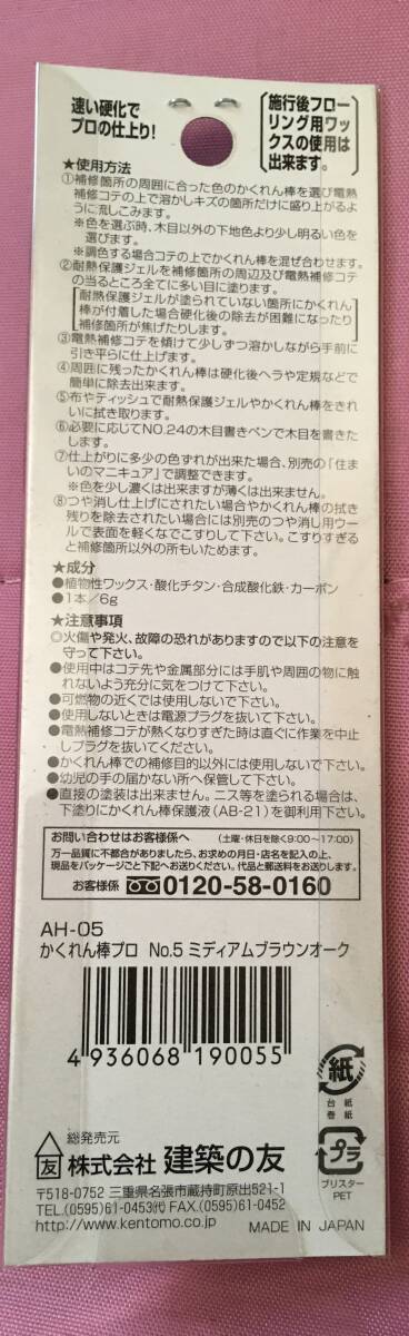 ●送料込★建築の友 かくれん棒プロ単色 Mブラウンオーク AH-05【新品激安】