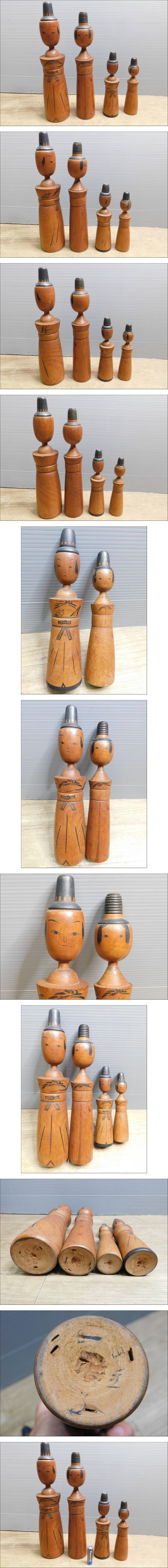 【在銘創作こけし】珍品こけし 古い雛こけし 大小4体セット 夫婦こけし 古作/M270