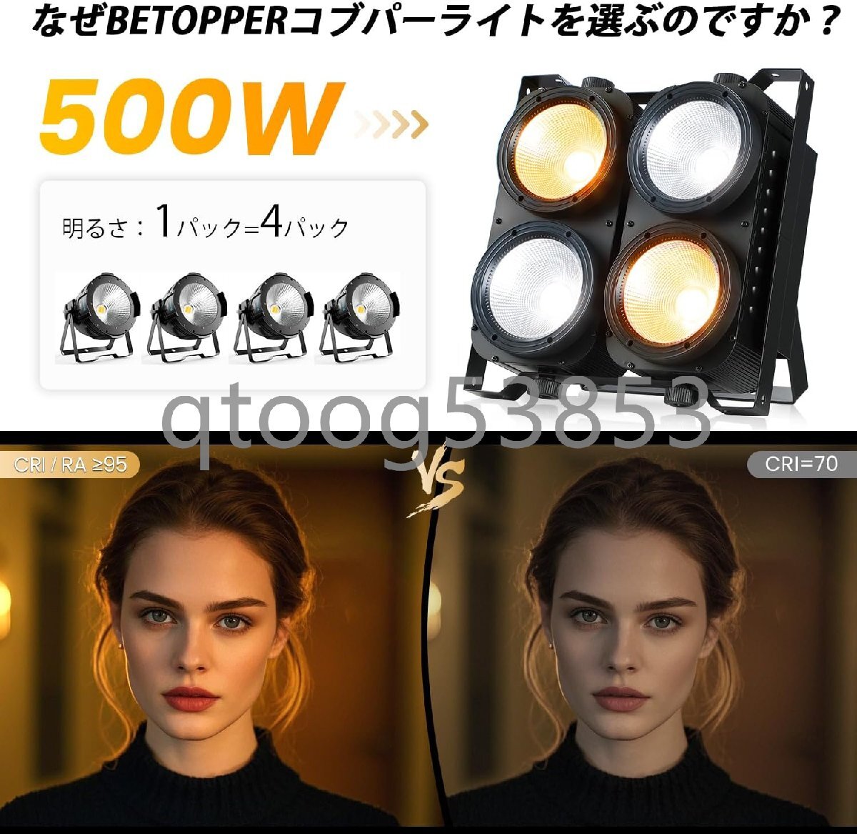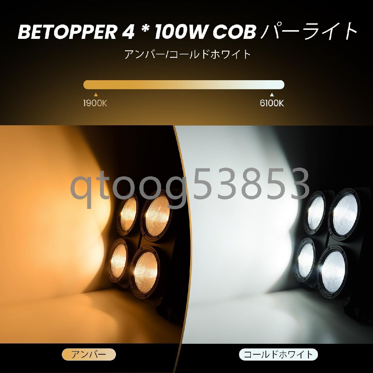 スーパーブライト&リアルな効果:従来の温白色ブラインダーライトを超えたBETOPPER 4x100Wステージスポットライトは、4つの100W 1900-6100K COB LEDを備えています。ここには力不足のLEDはありません。4つの100W COBソースが13,000ルーメン以上を発揮し、ステージをより明るく、より大胆に、よりインパクトのあるものにします。このステージライトは、自然な見た目の照明を実現する純粋で鮮やかなウォッシュ効果を提供します。
