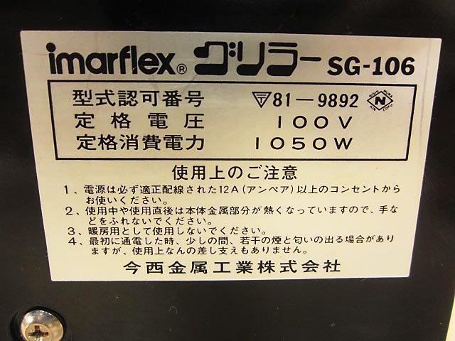 【商品名】 imarflex GRILLER スモークレス グリラー SG-106