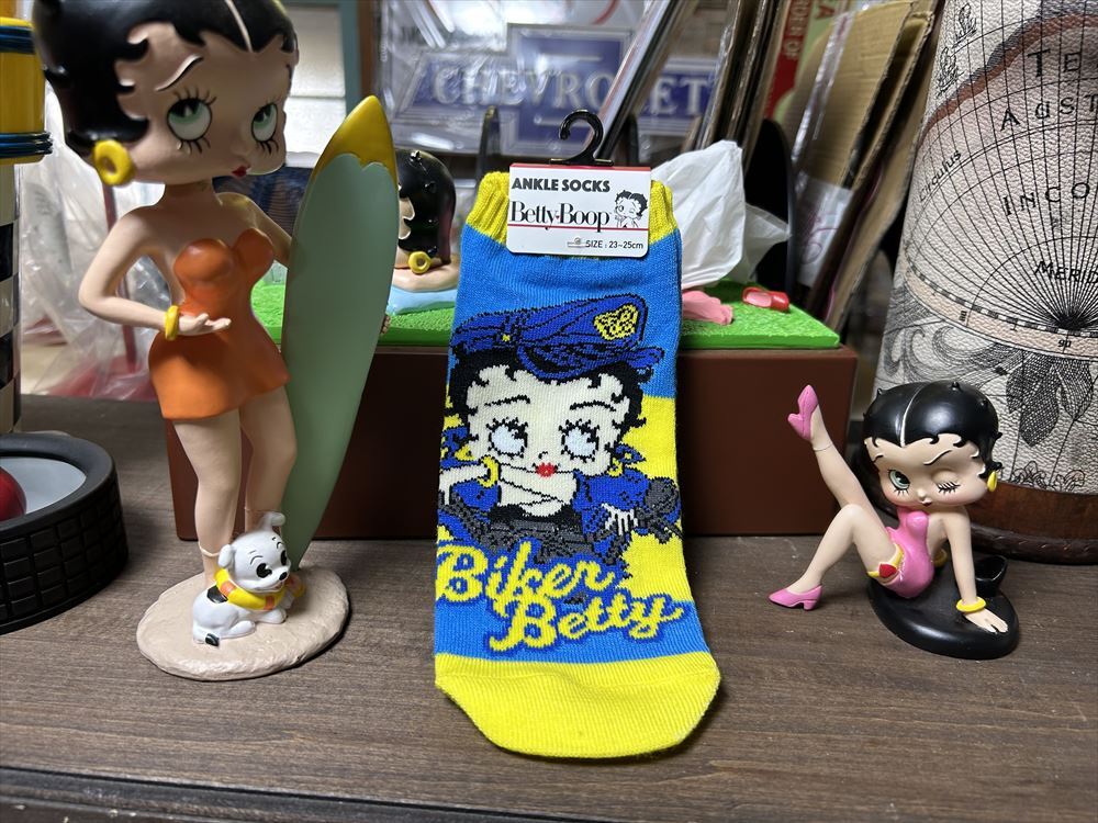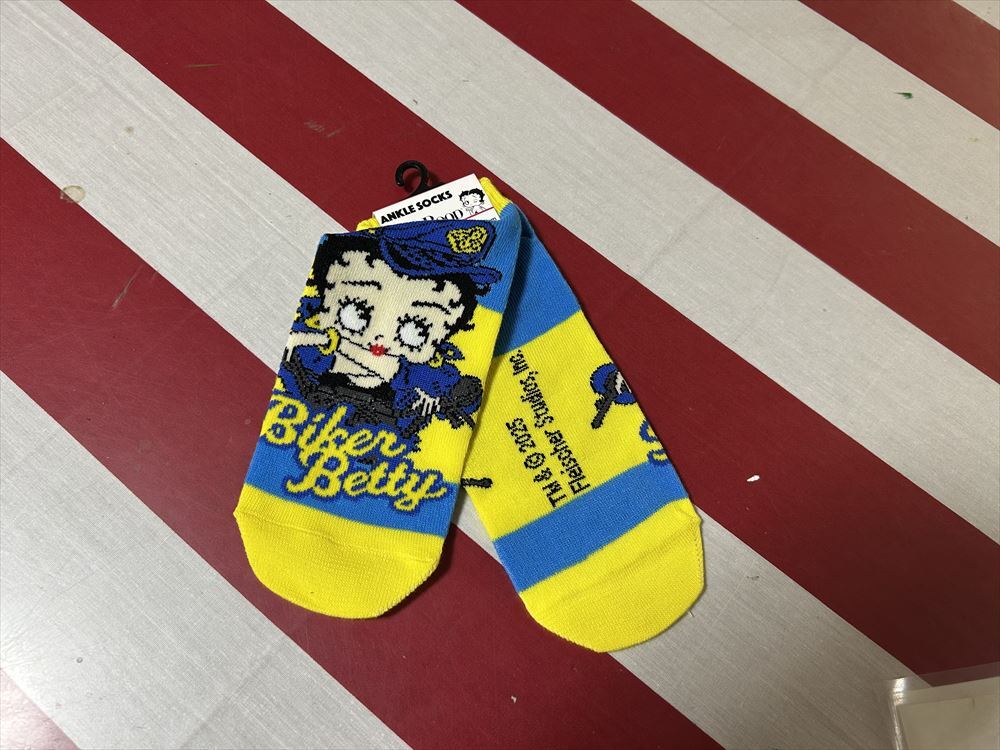 【214200】超人気のアメリカン雑貨のキャラクター!!!!ベティブープのアイテム レディースのアンクルソックスです。アンクルソックス・・くるぶしあたりまでの短めのソックス、正面にドーンとべティが描かれていて、靴を脱いだら目立つの間違い無し サイズ23~25cm 素材 ポリエステル,ポリウレタン