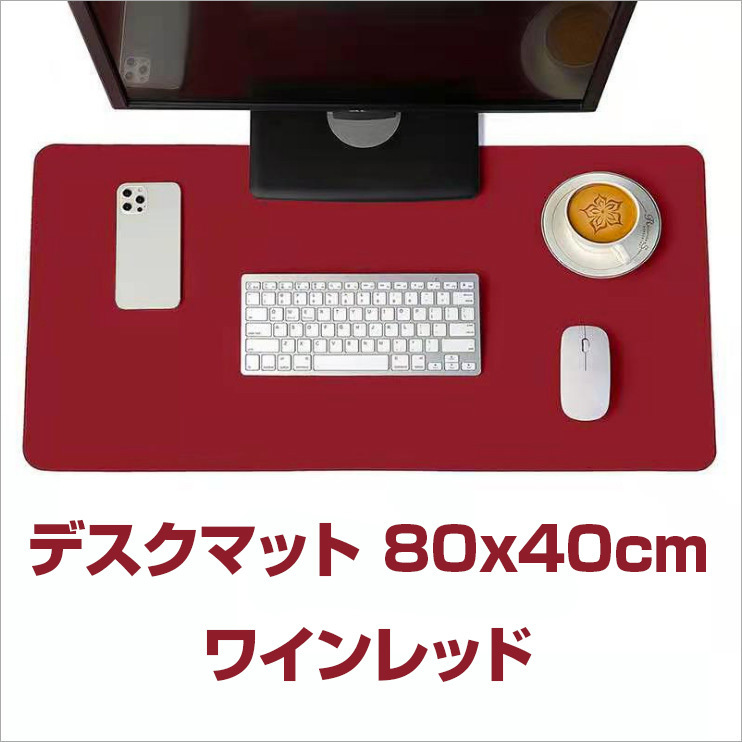 デスクマット パソコンマット 合皮 PUレザー 大判 80cm × 40cm 新品未使用 【ワインレッド】