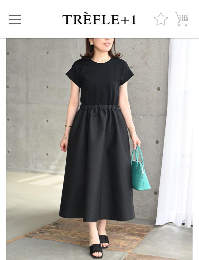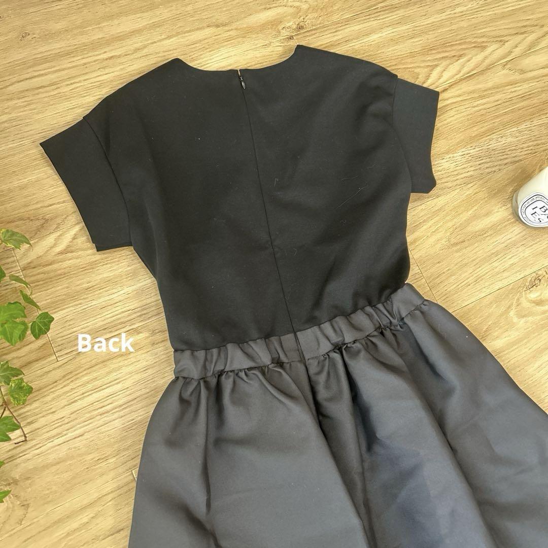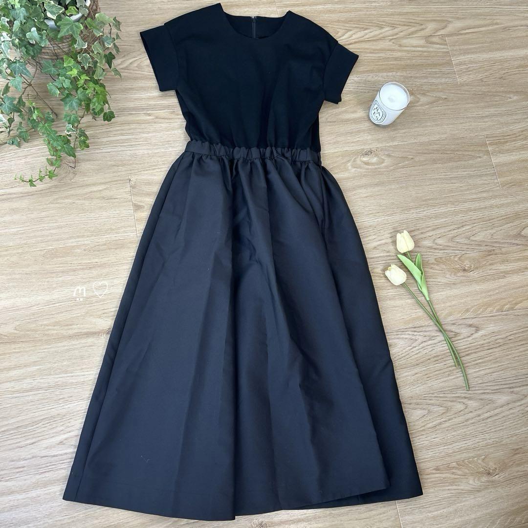 シルケット加工を施したストレッチポンチ素材と軽量ながらもふっくらハリツヤのある二重織素材をドッキングしたワンピースです。