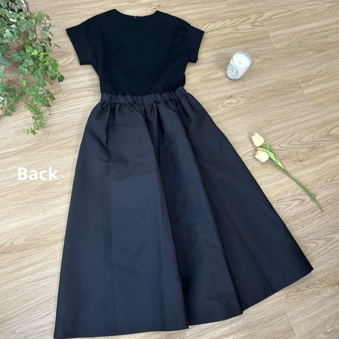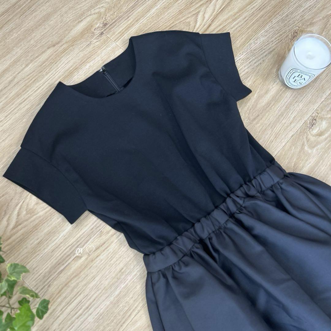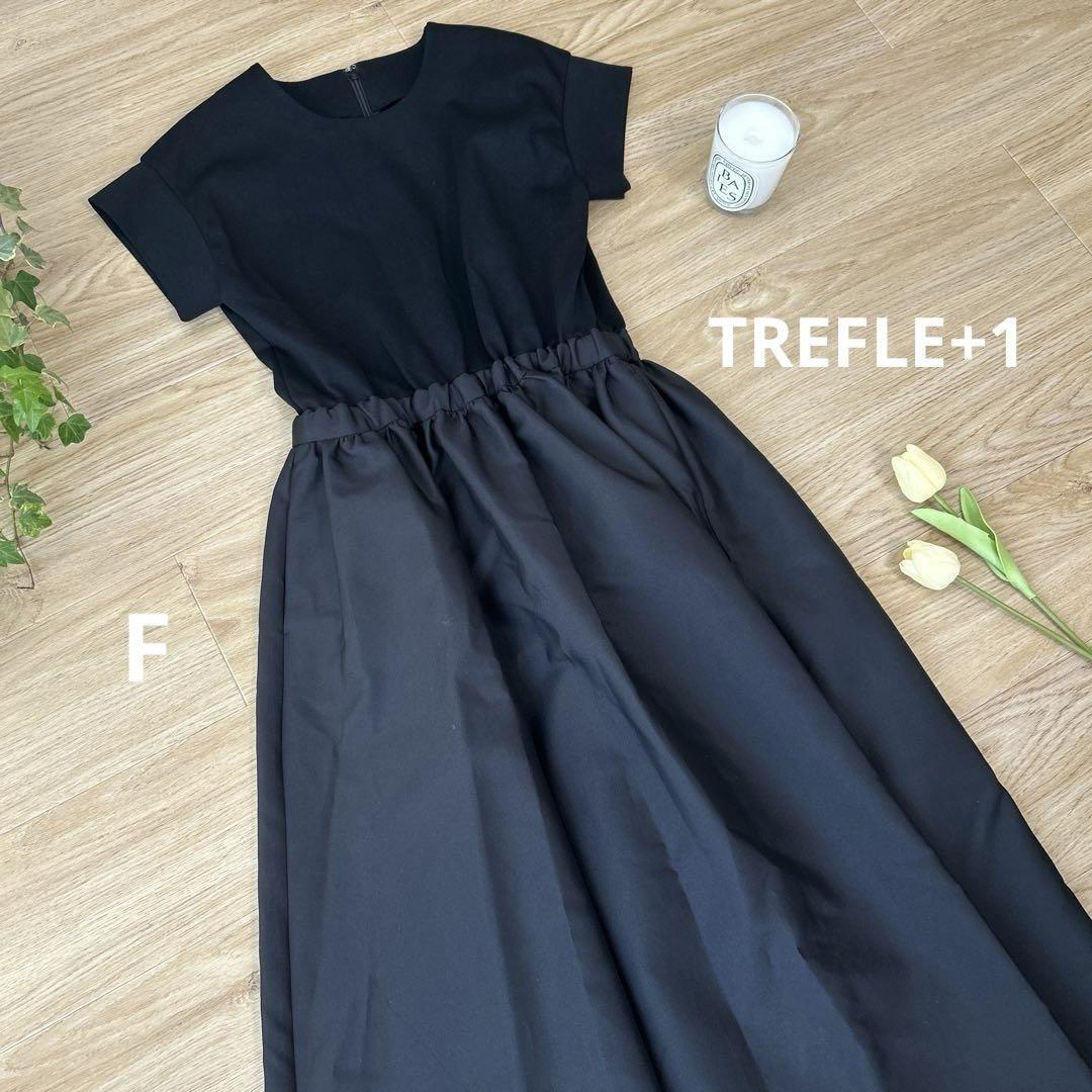 シルケット加工を施したストレッチポンチ素材と軽量ながらもふっくらハリツヤのある二重織素材をドッキングしたワンピースです。