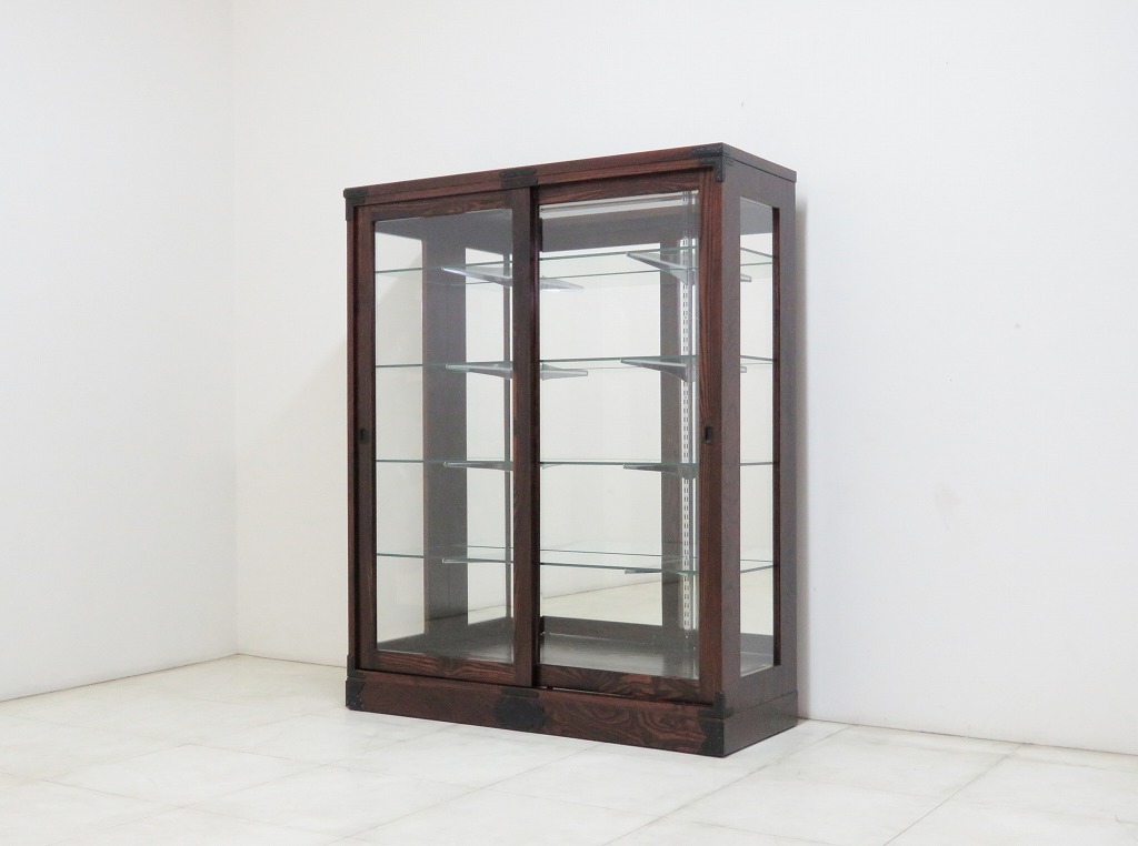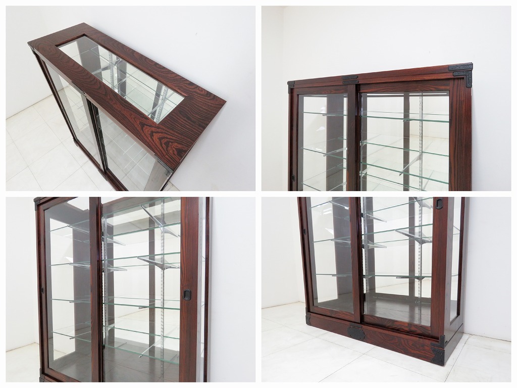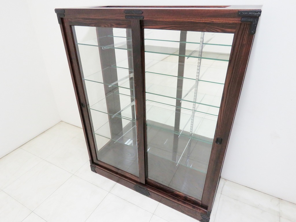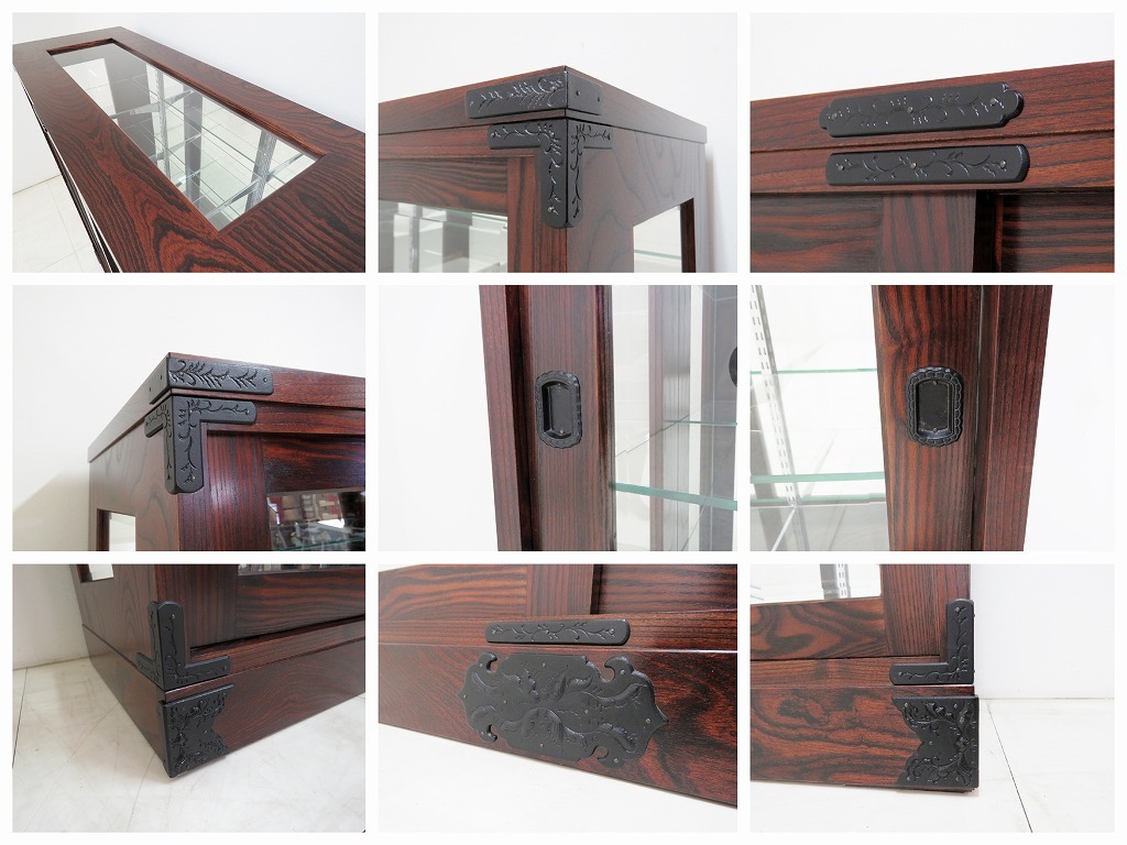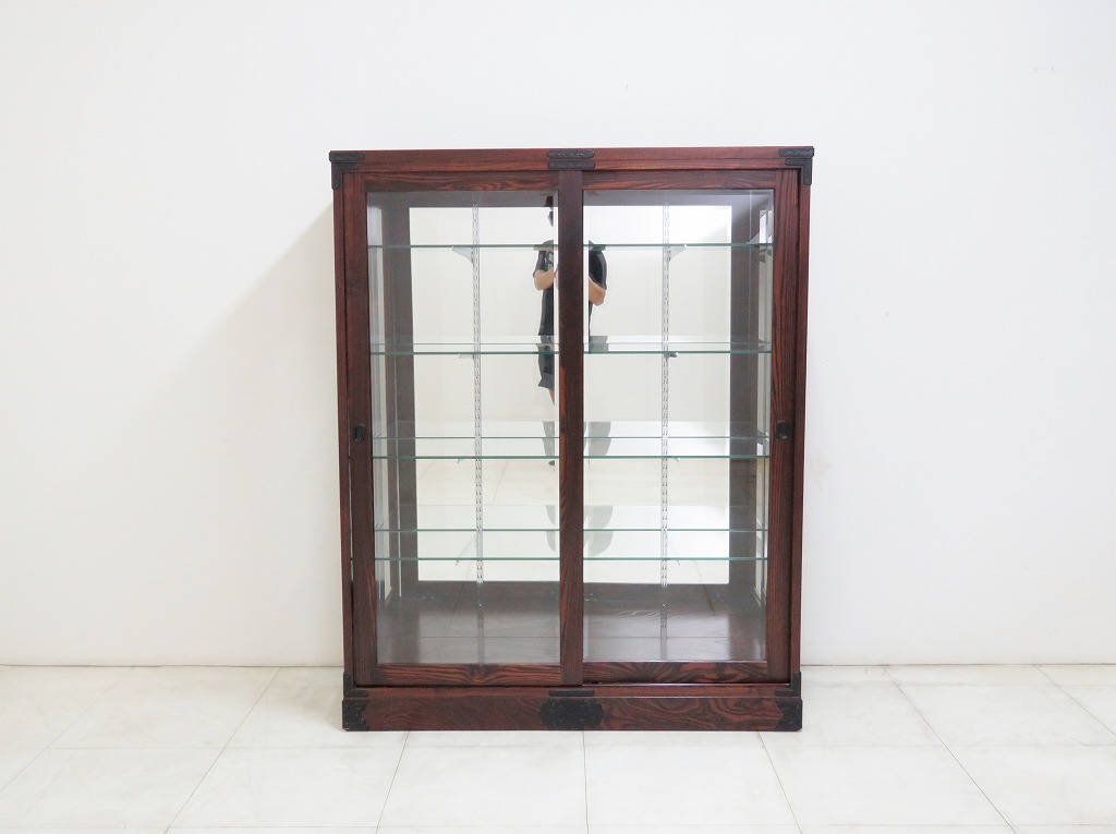★美品★■岩谷堂箪笥■別注キュリオケース■欅 拭漆 南部鉄器■ショーケース ガラス 飾り棚 ディプレイ 店舗 什器■伝統工芸■