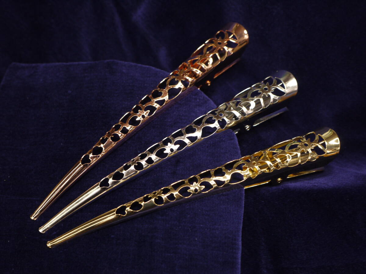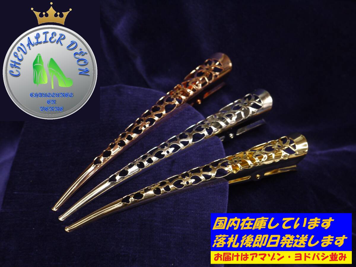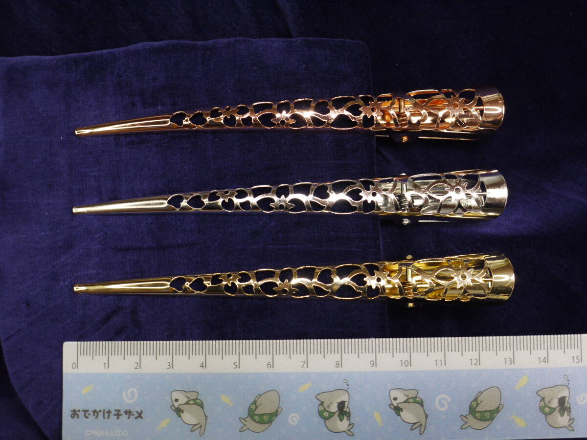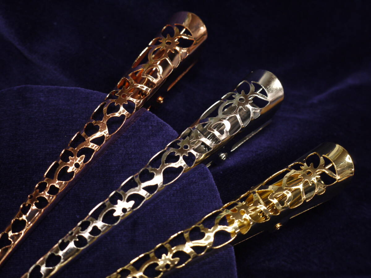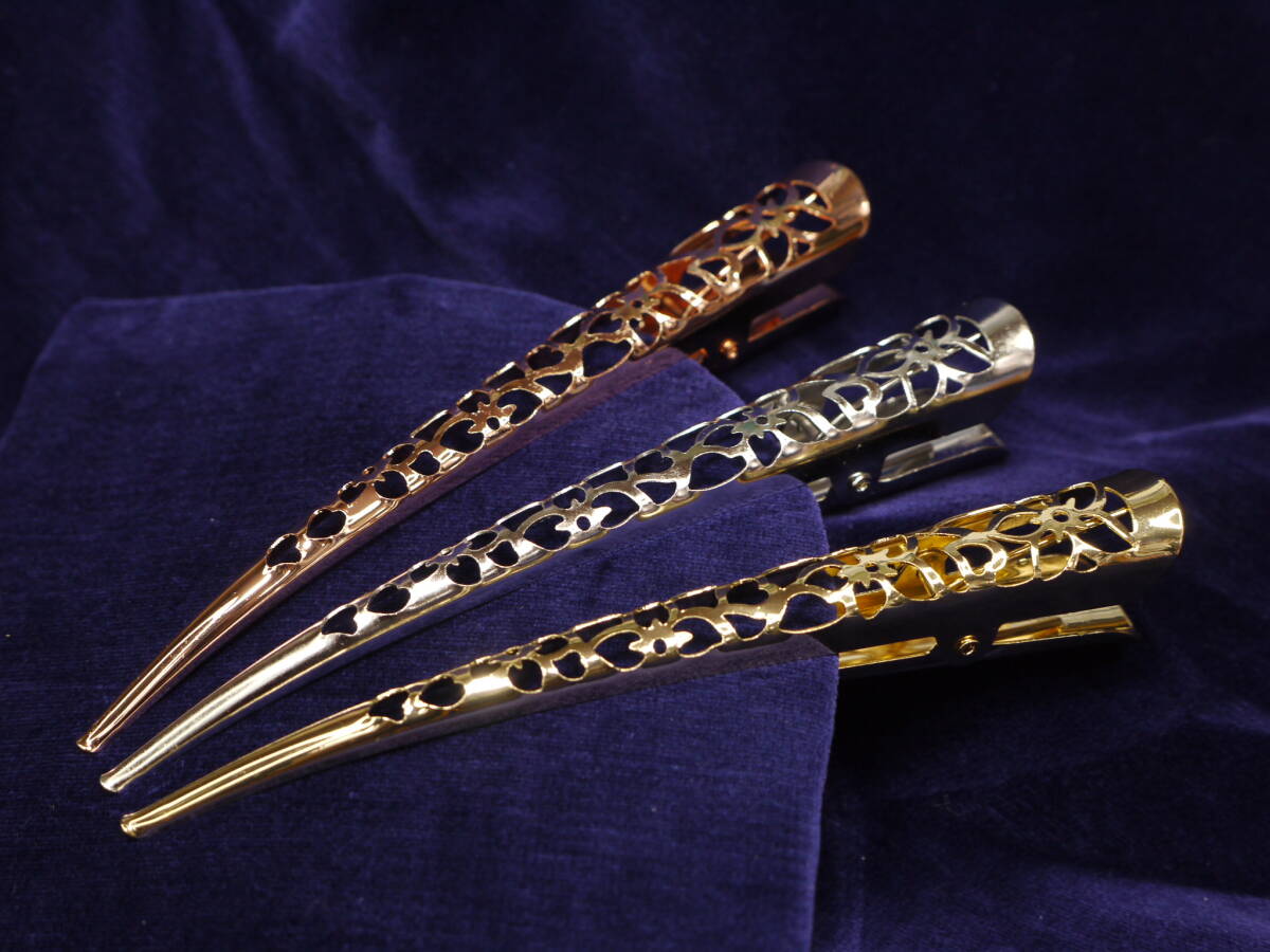 透かし花柄コンコルド(3点売り組み換え可)くちばしクリップ ヘアクリップ メタルクリップ 金銀銅 13cm ヘアーアクセサリー C-金銀銅-花柄