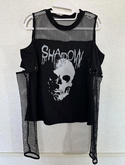 フィッシュネット 肩出しメッシュTシャツ スカル SHADOW レディース トップス ・カットソー 長袖 サイズ M クラブ バンドT,Skull ドクロ