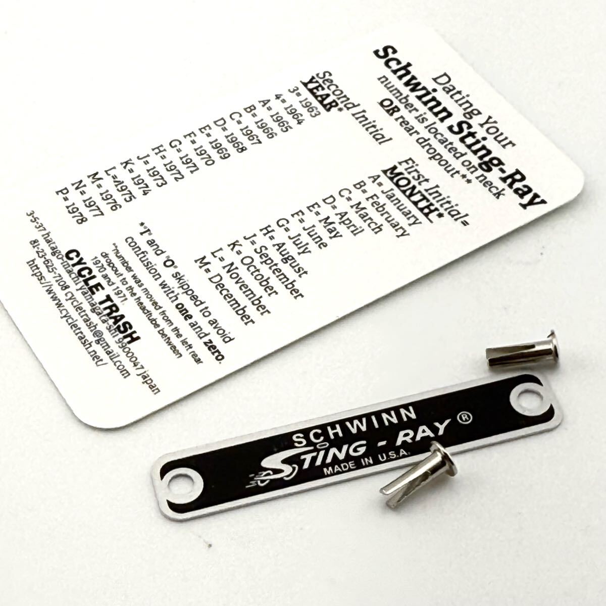 ビンテージのシュウィンスティングレイ純正シートレストア用のシートタグとリベットのセット