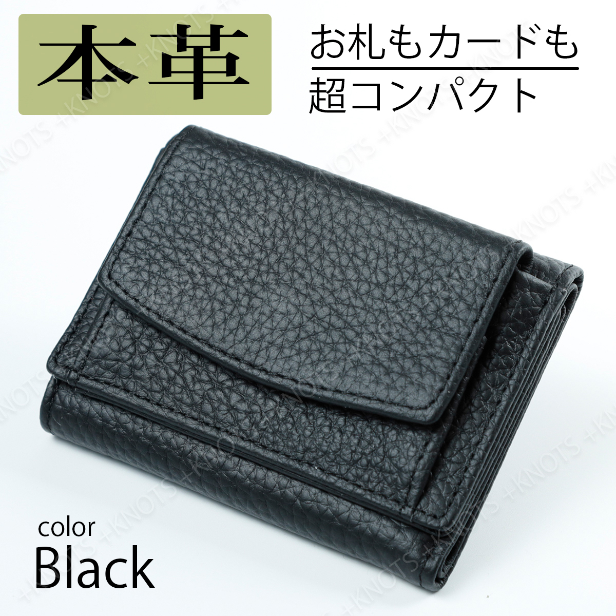 本革ミニ財布 ブラック黒 三つ折り財布 小さい財布 コンパクト財布 レディース 牛革レザー ボックス型コインケース小銭入れa229