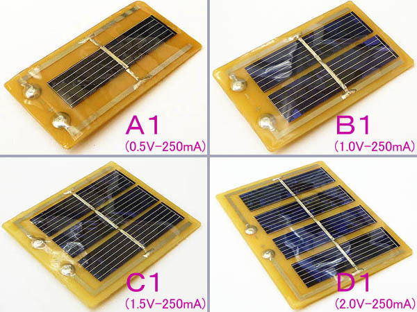 | 最大電圧 0.5V 最大電流 250mA サイズ 40mm x 80mm x 4mm 重量 約15g 単結晶・多結晶(指定できません) |