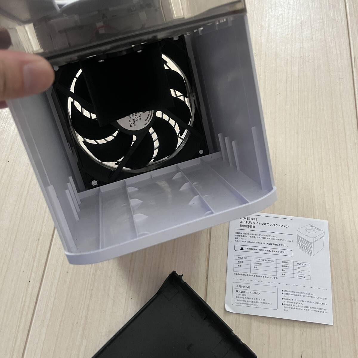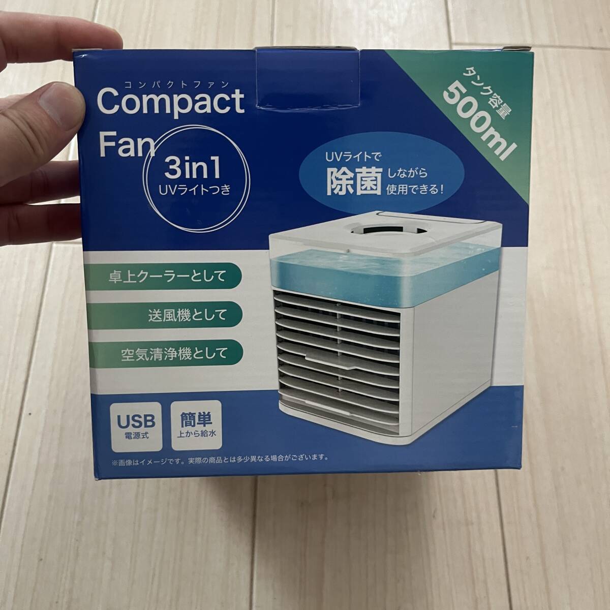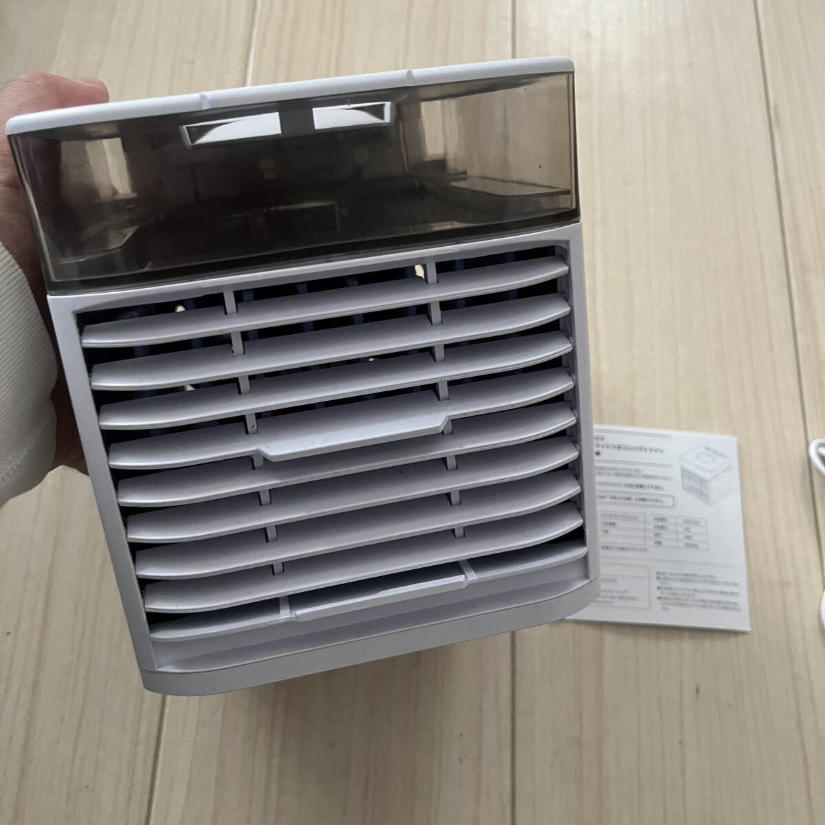 コンパクトファンです。3台中1台は未使用です、2台は1週間ほど使用しました。水を入れて使用しました。機能として、空気清浄・ミスト機能・冷却ファンと説明がありますが、どれも機能しているのか不明でした。扇風機のように風は来ていました。説明書通りに操作しても、説明書通りに動作してないような気がします。